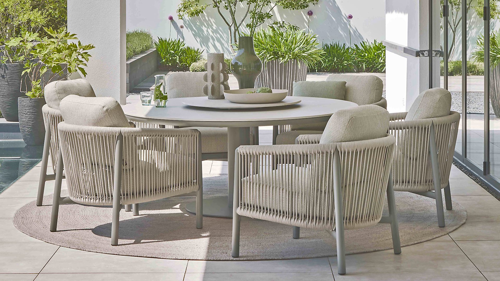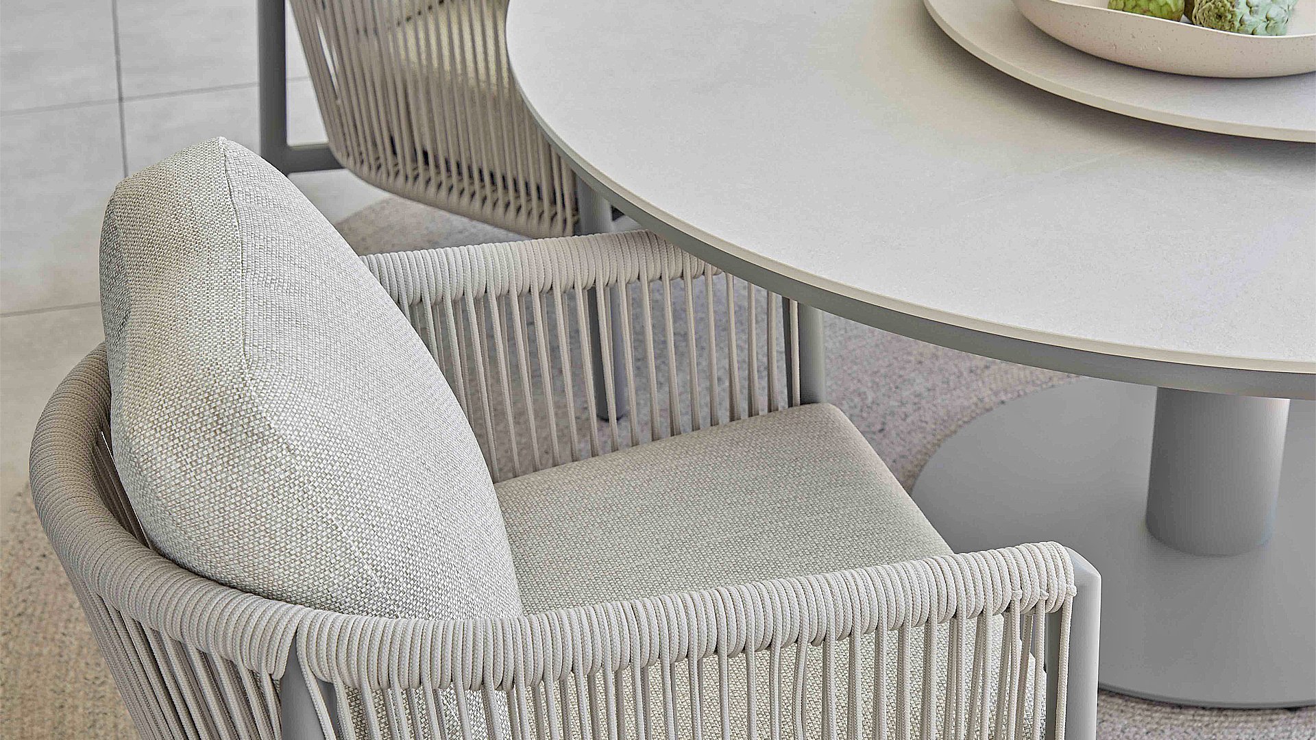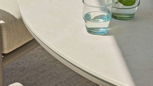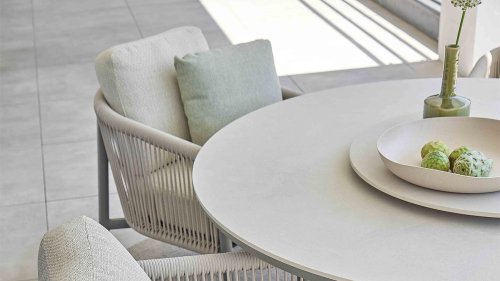 A beautiful combination with the Bora Bora low dining set. The top is made of sintered stone, which is both maintenance-free and scratch- and weather-resistant. Combined with a powder-coated aluminum frame that doesn't get in the way of your legs, how convenient is that? A Lazy Susan turntable Ø80cm is also available, which can be handy while dining.