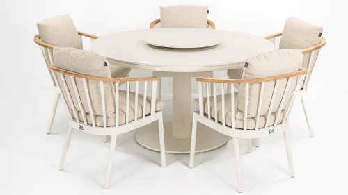This elegant Apple Bee table combines a luxurious appearance with unparalleled durability. The tabletop is crafted from Sintered Stone – a high-quality stone that is scratch, stain, heat, and UV resistant. Perfect for intensive outdoor use without compromising on style. The sturdy powder-coated steel base gives the Melville a modern and refined look while offering maximum stability. To add more elegance, a Lazy Susan turntable Ø60cm is also available!