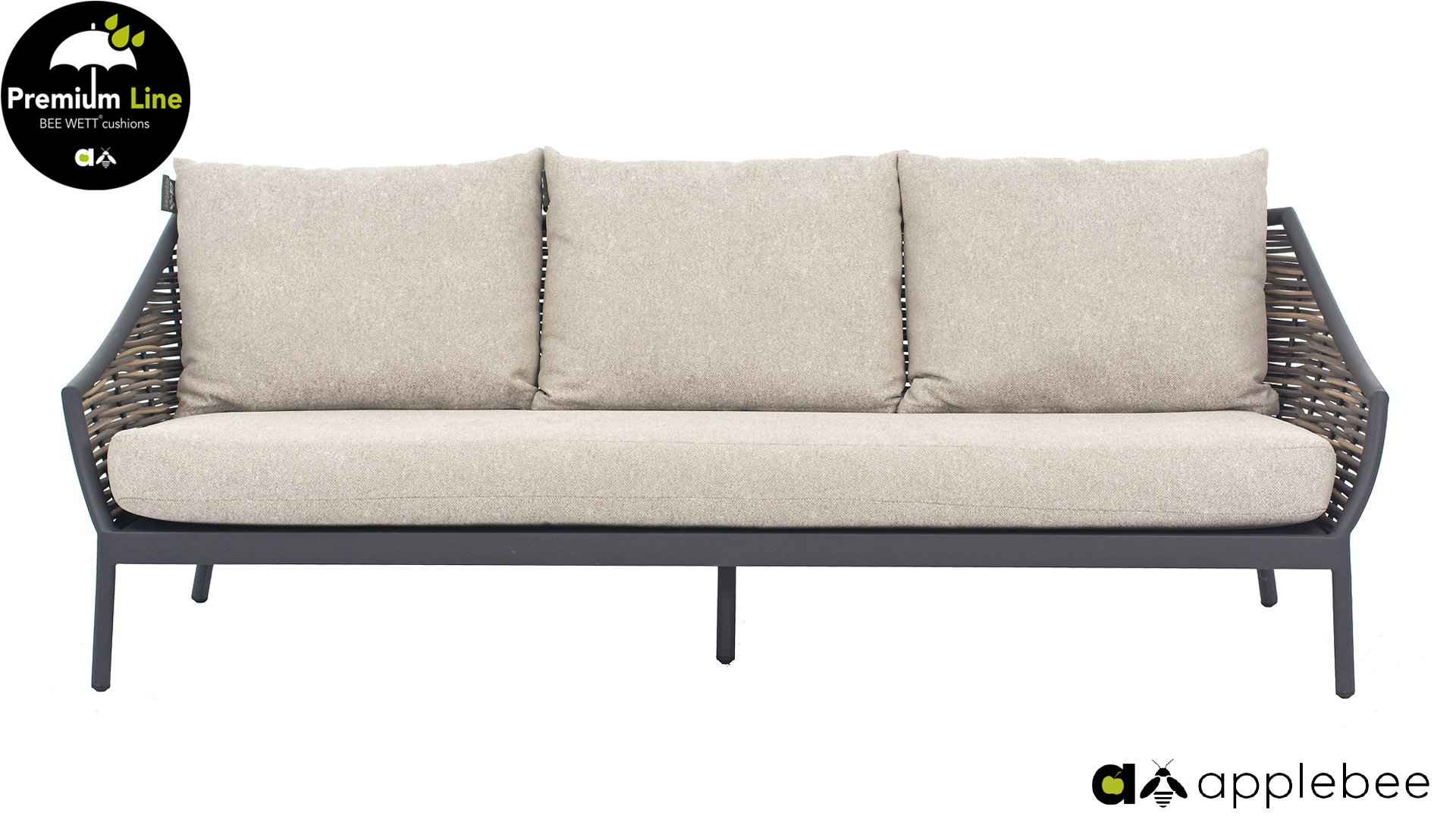 The Apple Bee Milou Lounge Black boasts the beautiful appearance of wicker and adds a natural touch to your lounge set! It offers generous seating comfort and thick cushions featuring Apple Bee's renowned Bee Wett® technology. The frame is crafted from powder-coated aluminum in oyster color, combined with sturdy biculair wickerwork. This wickerwork is framed by an black powder-coated frame with curved lines, giving the Milou its chic, modern look.
