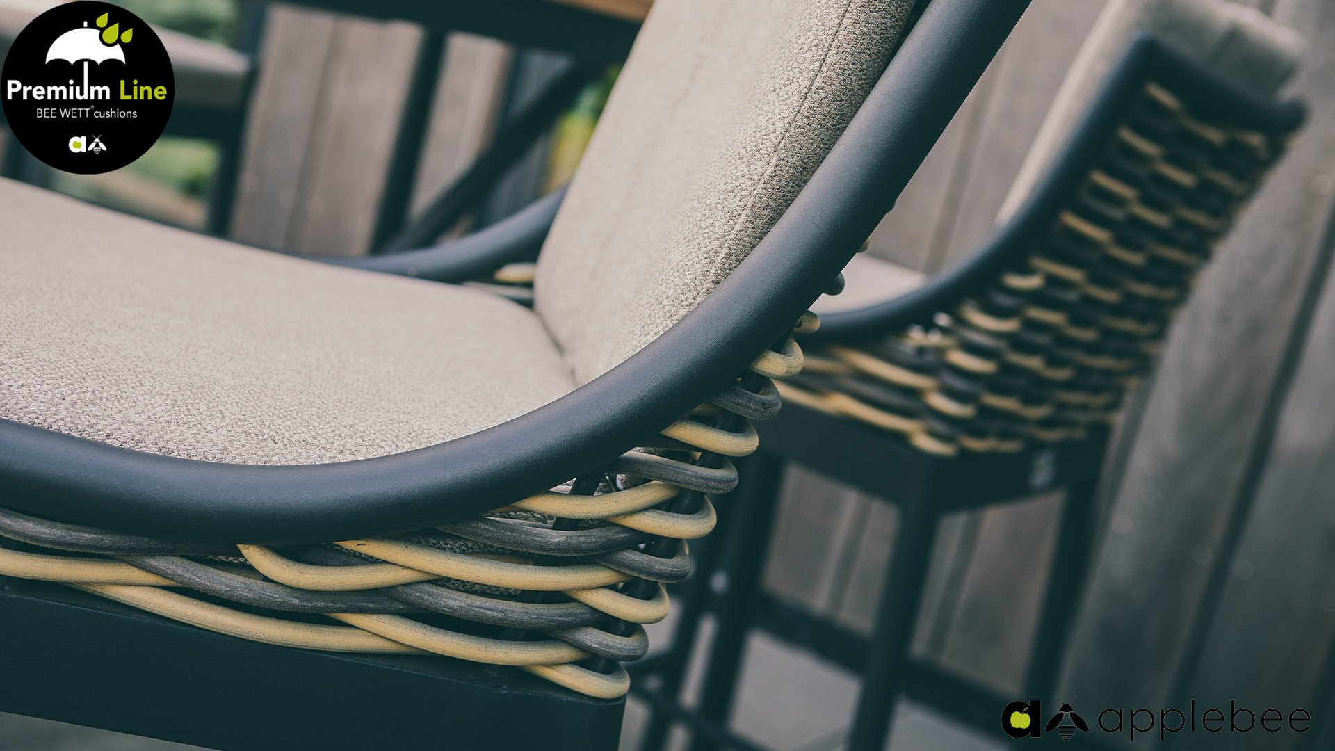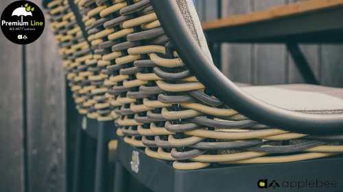 Apple Bee is characterized by the use of special Biculair® wickerwork, originally developed for professional applications in the hospitality industry. This Biculair® wickerwork is a lifelike, sustainable alternative to rattan. This highly durable synthetic rattan fiber (HDPE) is completely weatherproof, colorfast, recyclable, and therefore an environmentally friendly choice. The appearance and performance of the furniture remain unaffected by European weather conditions, and the colors retain their natural vibrancy. The superior quality of this wickerwork, verified by the Netherlands Organisation for Applied Scientific Research (TNO), is clearly demonstrated compared to other comparable materials.