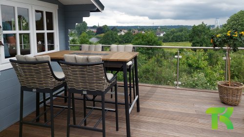 Teak wood is a natural product and particularly suitable for outdoor use. It is resistant to pests and fungi and can withstand sun, rain, and snow. Over time, the teak wood develops a silver-grey patina. Teak wood is a robust material and requires little maintenance. If you prefer the original colour of the teak wood, you can easily prevent the wood from turning grey by regularly using our care product. You can also clean teak wood with soft soap. We provide a guarantee against all manufacturing and construction defects. The natural movement/working of teak wood is not included in this. When you choose teak wood, we expect you to appreciate these characteristics. Hairline cracks that may occur, knots in the teak, rough surfaces over time, or irregular discolouration are not covered by our warranty. These characteristics give the teak wood its own character and appearance and are part of its natural properties. Be careful with a flowerpot or vase on your teak garden table, as this can cause stubborn rings or colour differences. Imperfections are common; these blemishes are characteristic of this product. These irregularities can never give rise to a claim, warranty, or complaint. This is a sign of originality!