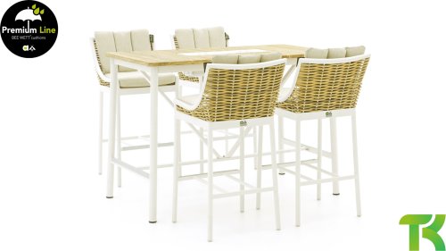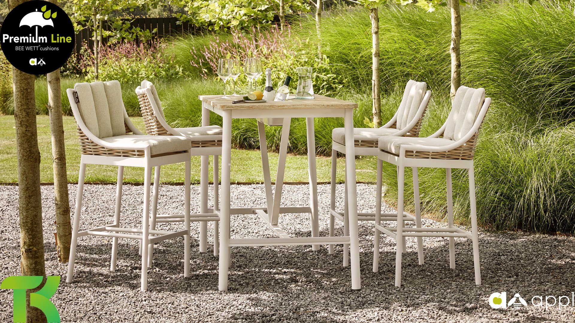 The Milou bar set is from the brand AppleBee. The outdoor chair has a modern look due to the use of Willow wickerwork. The AppleBee Milou bar stool has a strong frame that is powder-coated in the color Oyster. The frame is finished with wickerwork in the color Willow. The wicker is made of all-weather material and can therefore remain outside all year round.