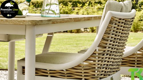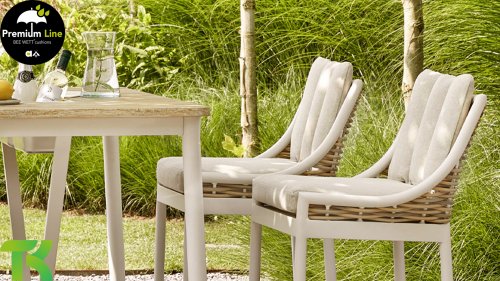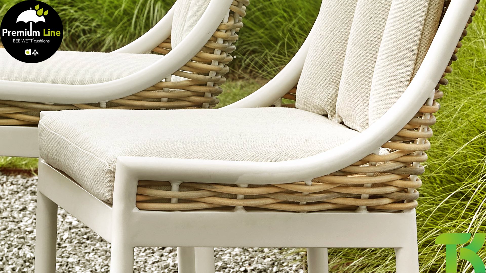 Apple Bee is characterized by the use of special Biculair® wickerwork, originally developed for professional applications in the hospitality industry. This Biculair® wickerwork is a lifelike, sustainable alternative to rattan. This highly durable synthetic rattan fiber (HDPE) is completely weatherproof, colorfast, recyclable, and therefore an environmentally friendly choice. The appearance and performance of the furniture remain unaffected by European weather conditions, and the colors retain their natural vibrancy. The superior quality of this wickerwork, verified by the Netherlands Organisation for Applied Scientific Research (TNO), is clearly demonstrated compared to other comparable materials.