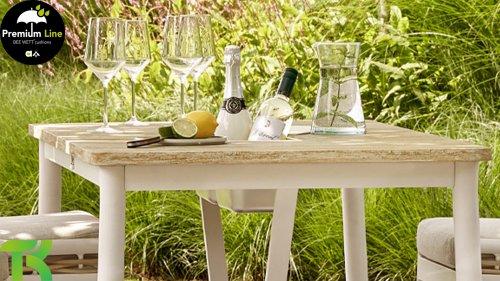 1 x Apple Bee Milou bar table aluminum-teak white wash 150x78cm