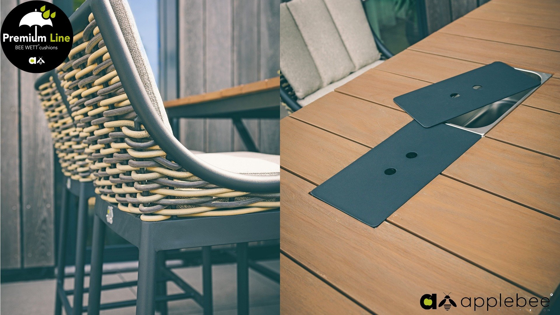 The Apple Bee Bee Wett cushions are special weather-resistant cushions. The removable cover is washable at a maximum of . The open weave on the underside of the cushion ensures perfect drainage. This means your Bee Wett cushion dries spectacularly faster than other cushions. Furthermore, the fabric is resistant to rot and mold, UV-resistant, moisture-repellent, soft, and comfortable. The cover has a zipper and is washable.