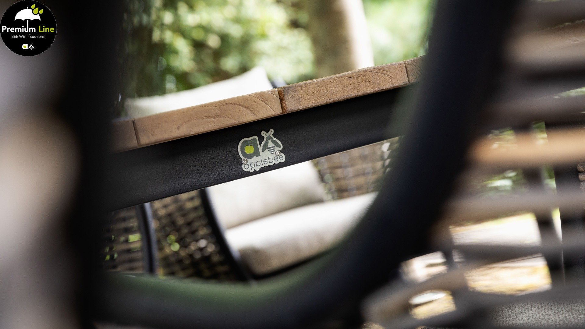 Apple Bee is characterized by the use of special Biculair® wickerwork, originally developed for professional applications in the hospitality industry. This Biculair® wickerwork is a lifelike, sustainable alternative to rattan. This highly durable synthetic rattan fiber (HDPE) is completely weatherproof, colorfast, recyclable, and therefore an environmentally friendly choice. The appearance and performance of the furniture remain unaffected by European weather conditions, and the colors retain their natural vibrancy. The superior quality of this wickerwork, verified by the Netherlands Organisation for Applied Scientific Research (TNO), is clearly demonstrated compared to other comparable materials.