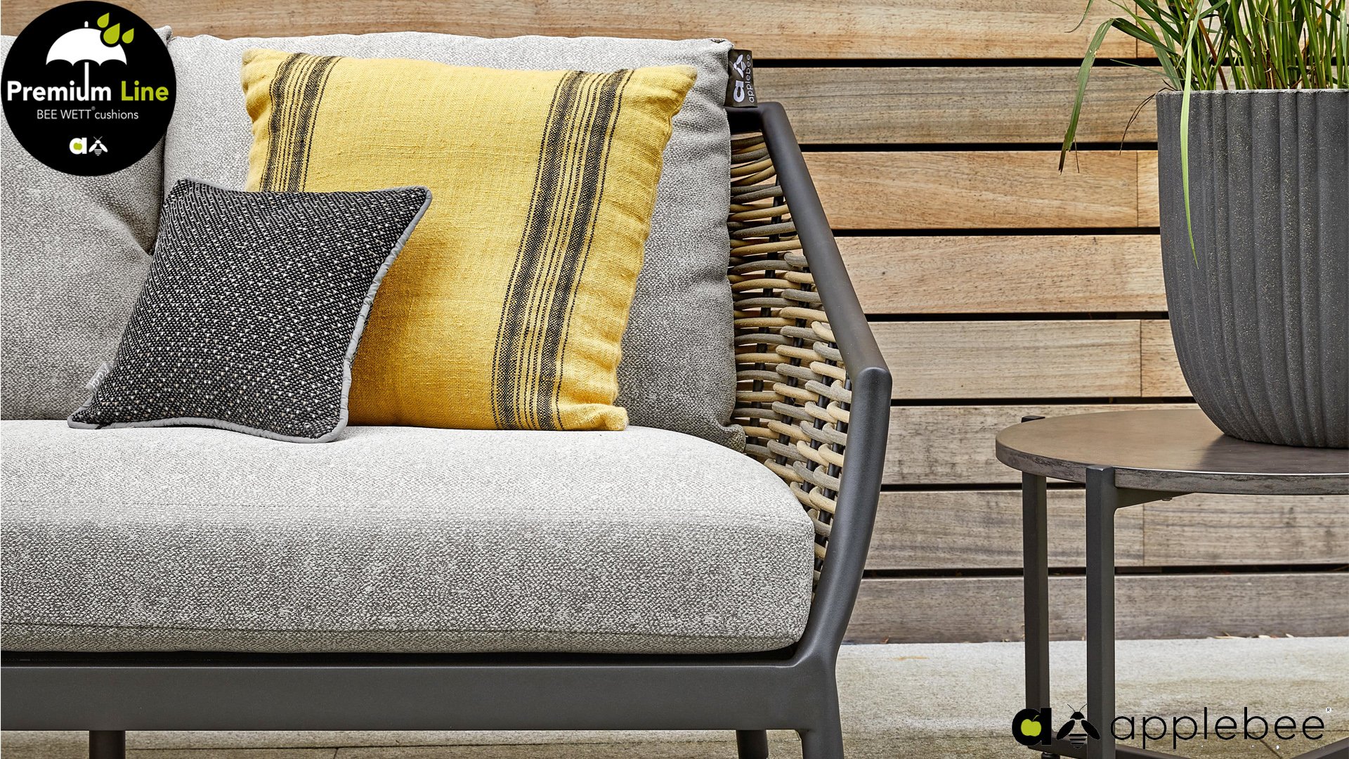 The Apple Bee Bee Wett cushions are special weather-resistant cushions. The removable cover is washable at a maximum of . The open weave on the underside of the cushion ensures perfect drainage. This means your Bee Wett cushion dries spectacularly faster than other cushions. Furthermore, the fabric is resistant to rot and mold, UV-resistant, moisture-repellent, soft, and comfortable. The cover has a zipper and is washable.