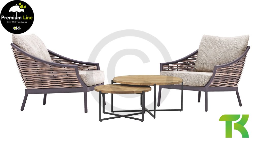 Apple Bee is characterized by the use of special Biculair® wickerwork, originally developed for professional applications in the hospitality industry. This Biculair® wickerwork is a lifelike, sustainable alternative to rattan. This highly durable synthetic rattan fiber (HDPE) is completely weatherproof, colorfast, recyclable, and therefore an environmentally friendly choice. The appearance and performance of the furniture remain unaffected by European weather conditions, and the colors retain their natural vibrancy. The superior quality of this wickerwork, verified by the Netherlands Organisation for Applied Scientific Research (TNO), is clearly demonstrated compared to other comparable materials.