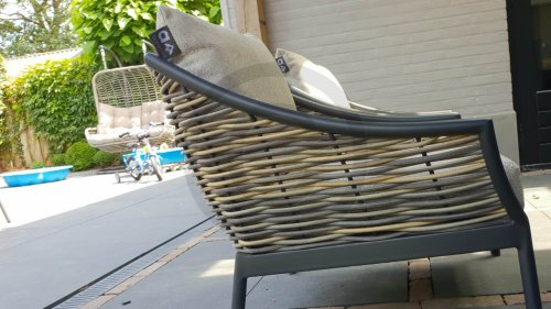 The Apple Bee Milou Lounge Black boasts the beautiful appearance of wicker and adds a natural touch to your lounge set! It offers generous seating comfort and thick cushions featuring Apple Bee's renowned Bee Wett® technology. The frame is crafted from powder-coated aluminum in oyster color, combined with sturdy biculair wickerwork. This wickerwork is framed by an black powder-coated frame with curved lines, giving the Milou its chic, modern look.