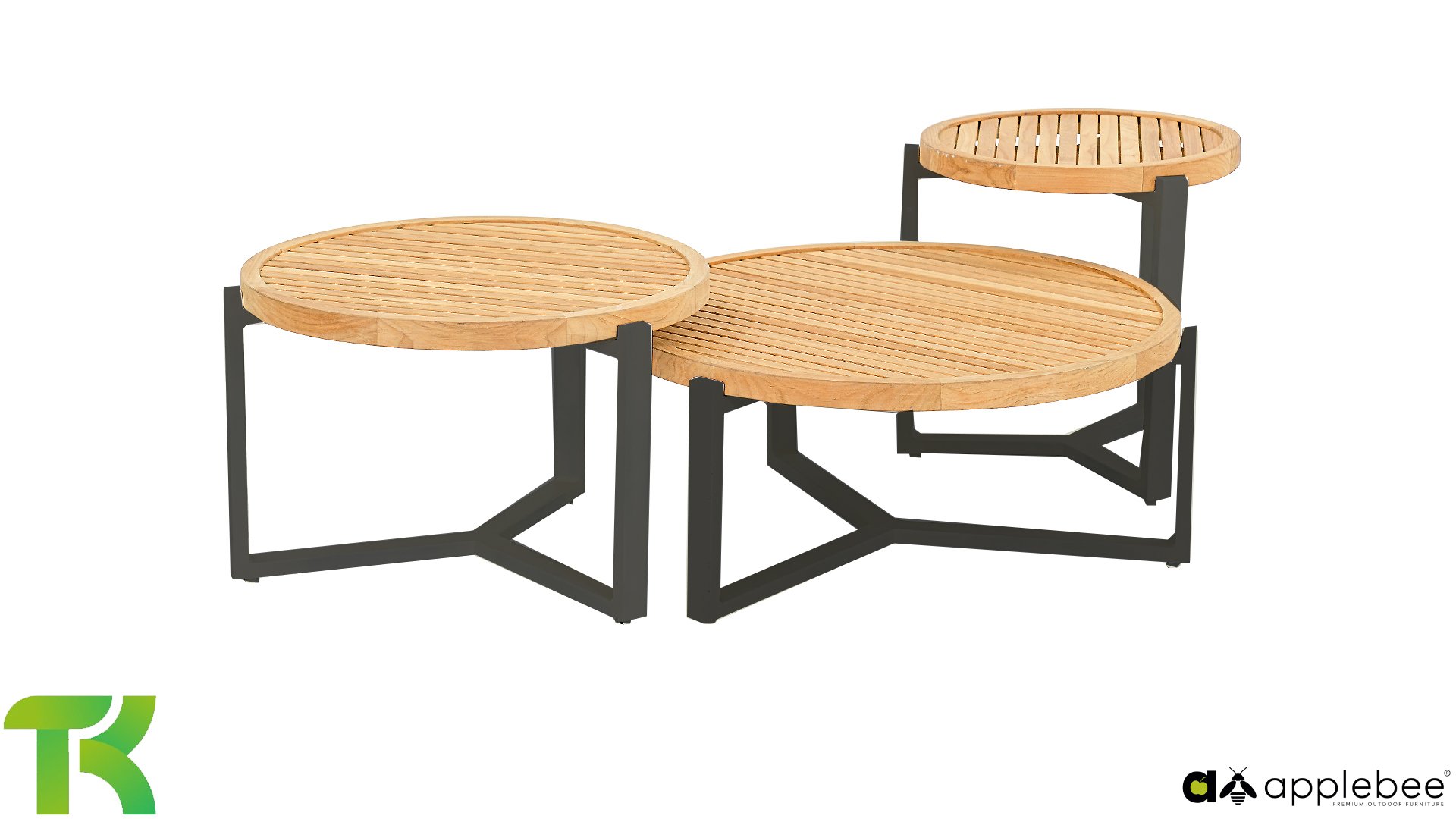 Meet the Apple Bee Monaco table series. A stylish combination of luxury and sustainability. The certified teak top gives the table a warm, natural look, while the powder-coated aluminum frame creates a modern, sleek look. The heights vary, making these tables perfect for combining as a set.