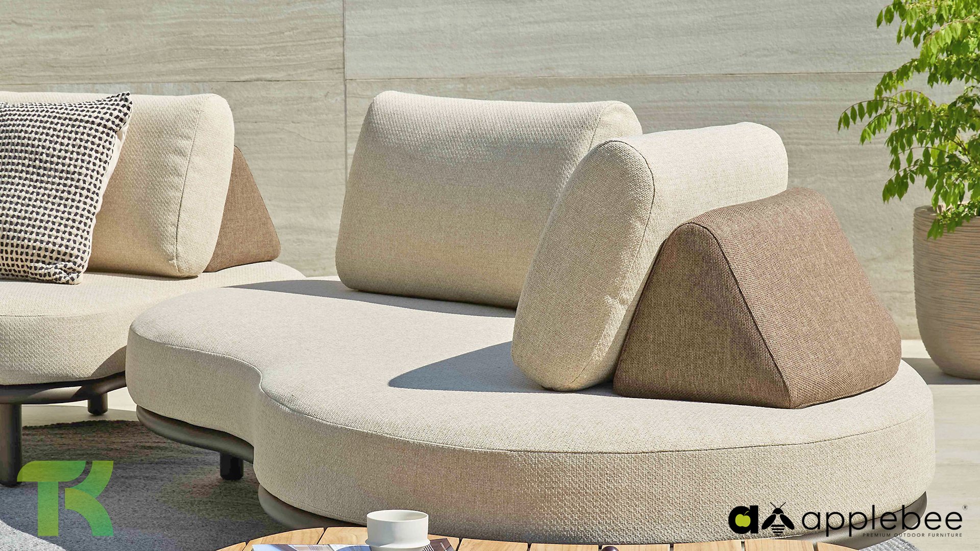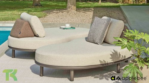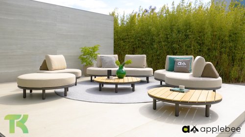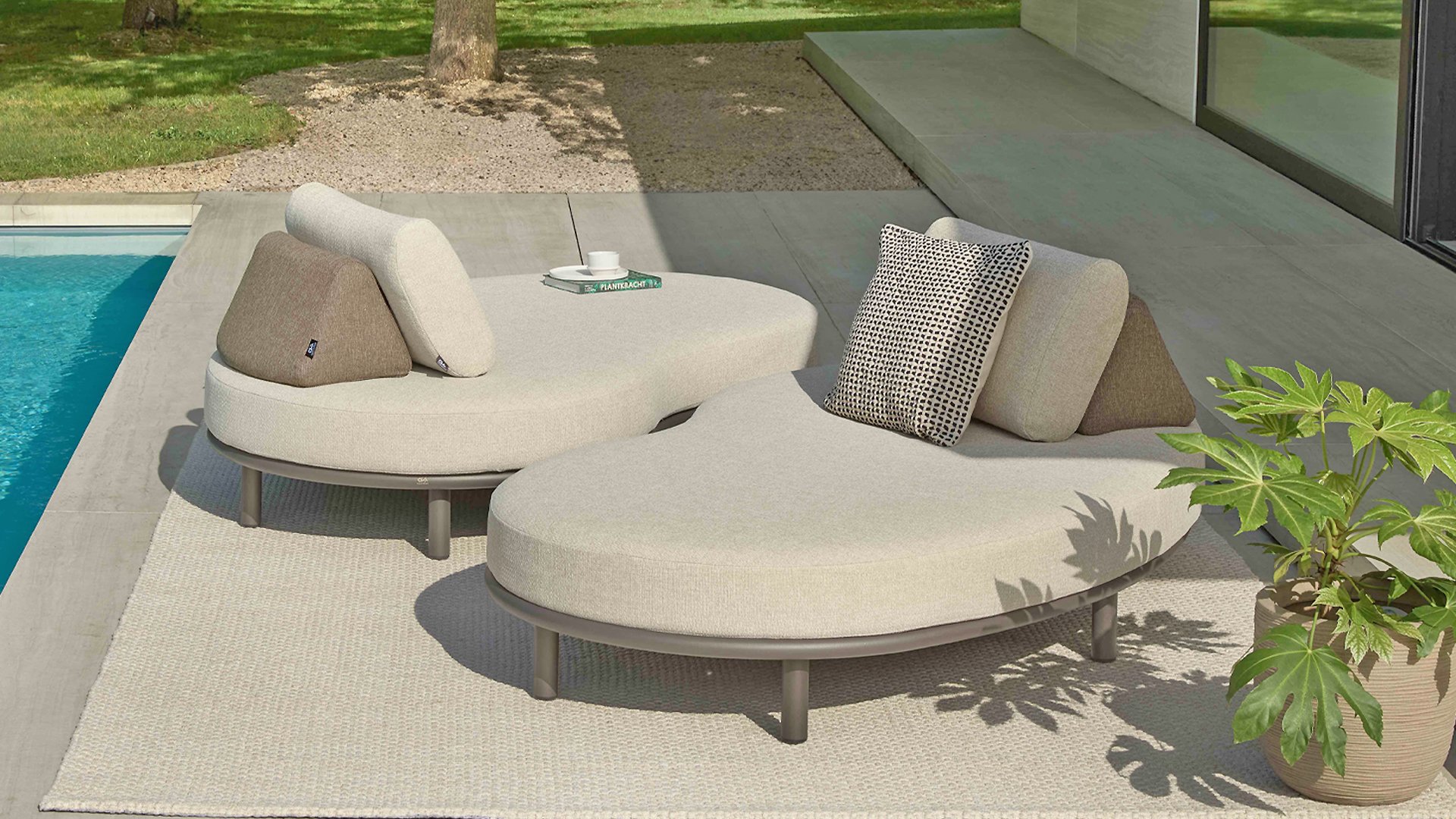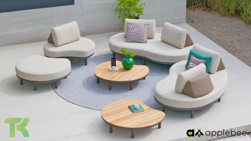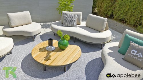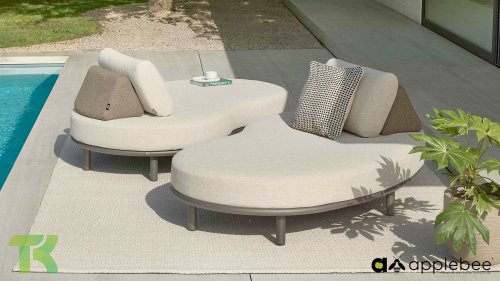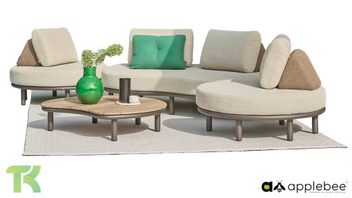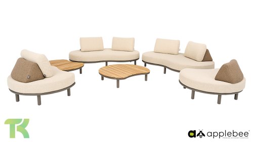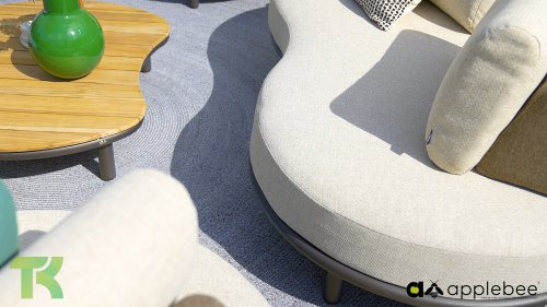 The Apple Bee Moon Island lounge set breaks with the traditional straight lines of garden furniture. The soft, rounded shapes instantly give your patio a modern and inviting look. What makes this set truly unique is its complete freedom of movement: the backrests are not attached to the frame. Thanks to the weighted back, the stylish brown backrests stay firmly in place without sliding. This allows you to completely customize your preferred seating position: directly across from each other for a pleasant conversation, or across the sofa for a moment of ultimate relaxation.
