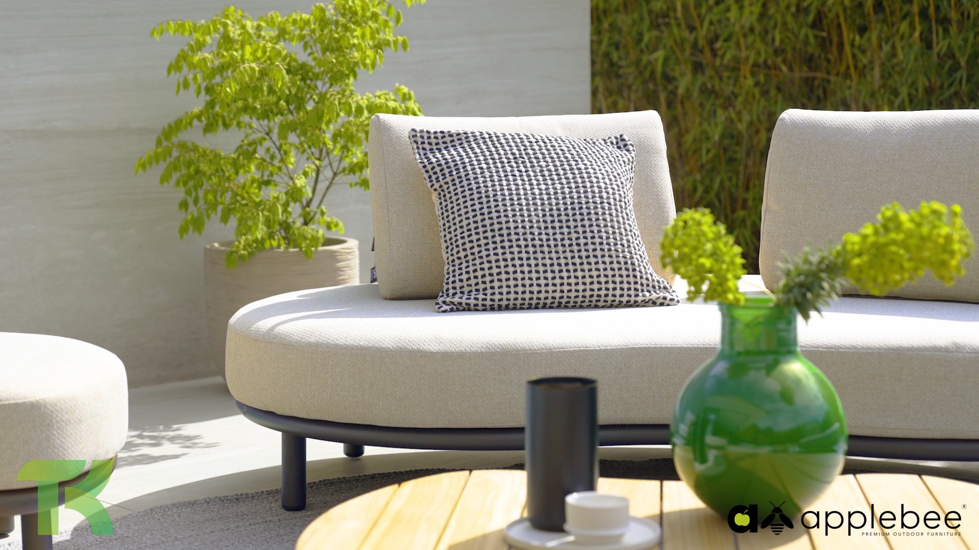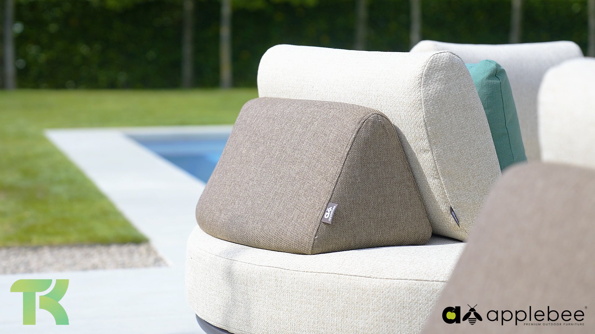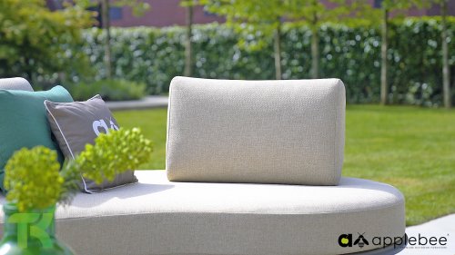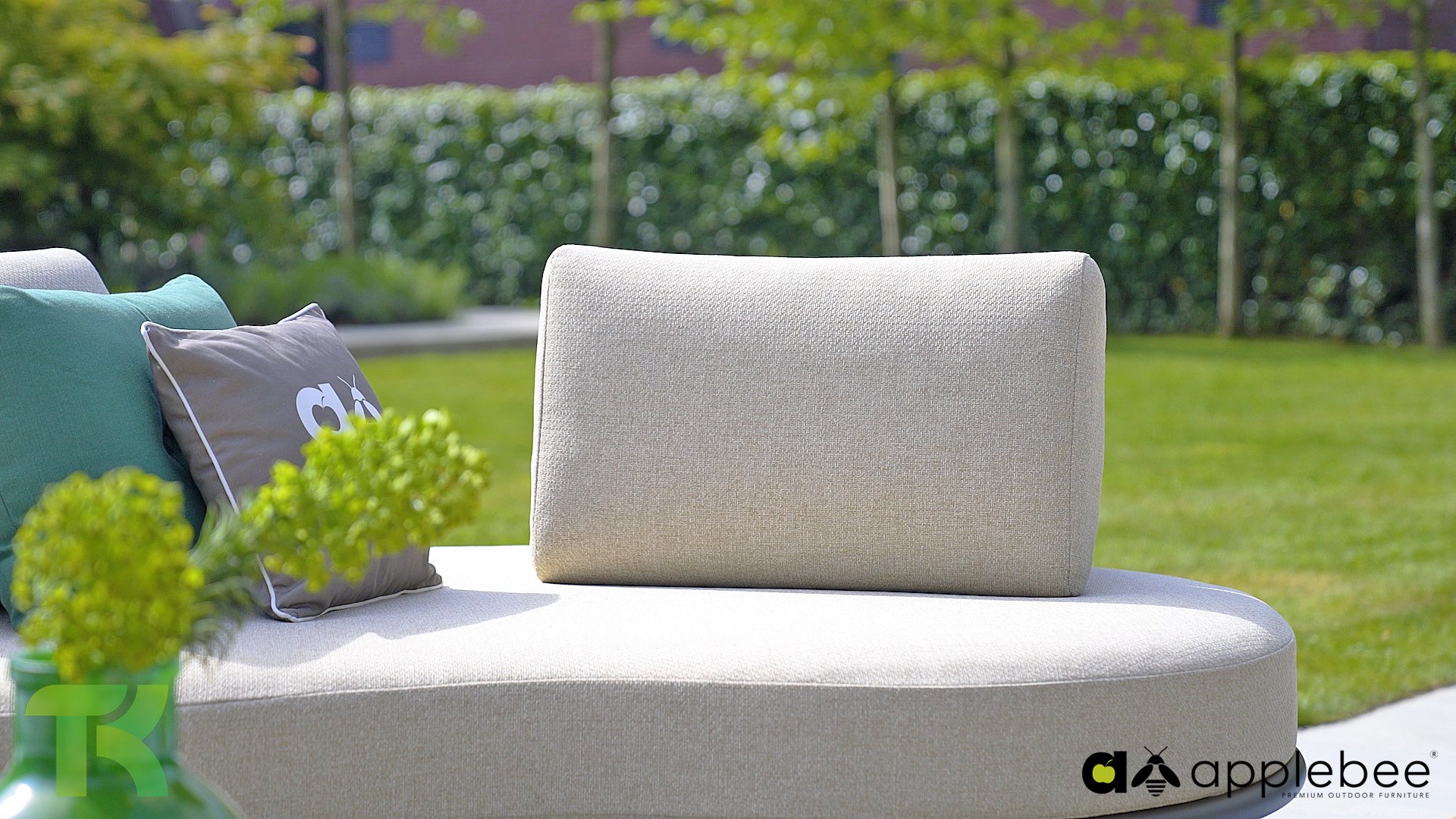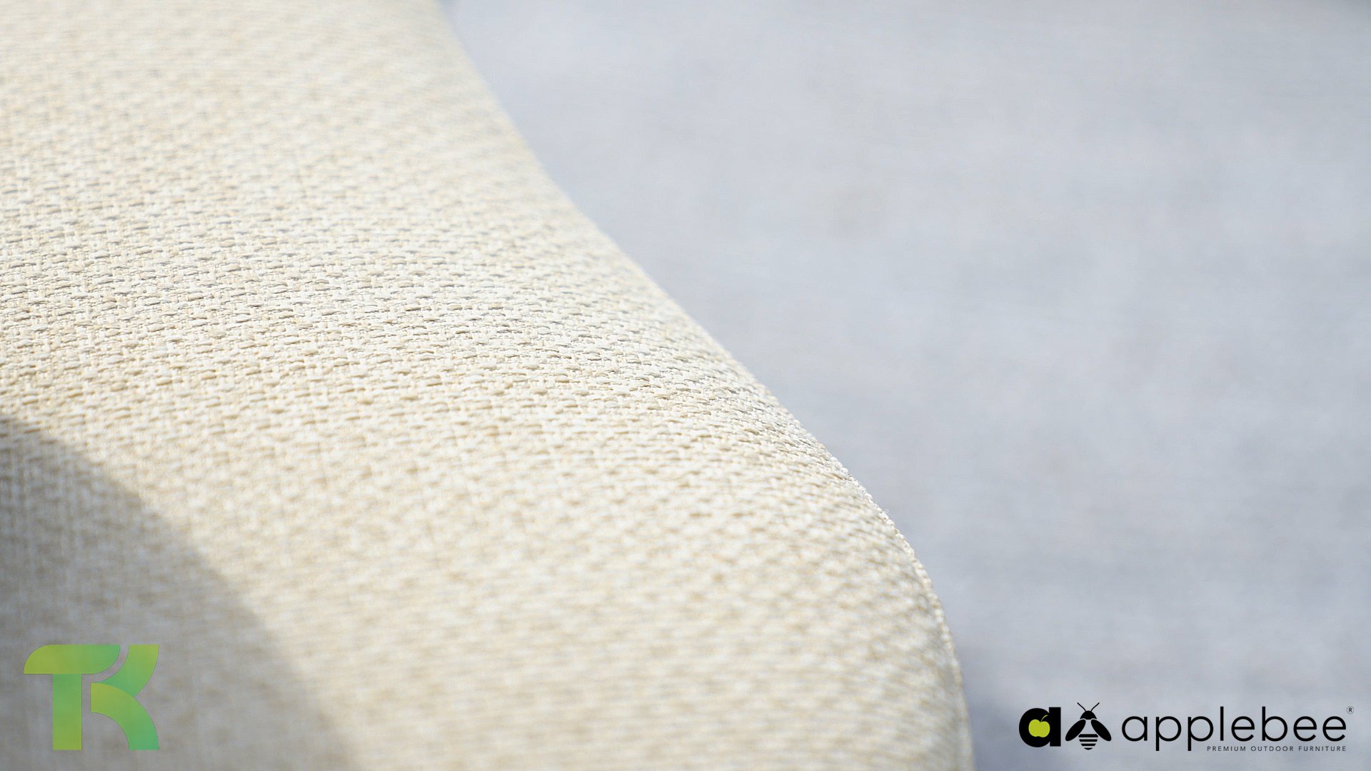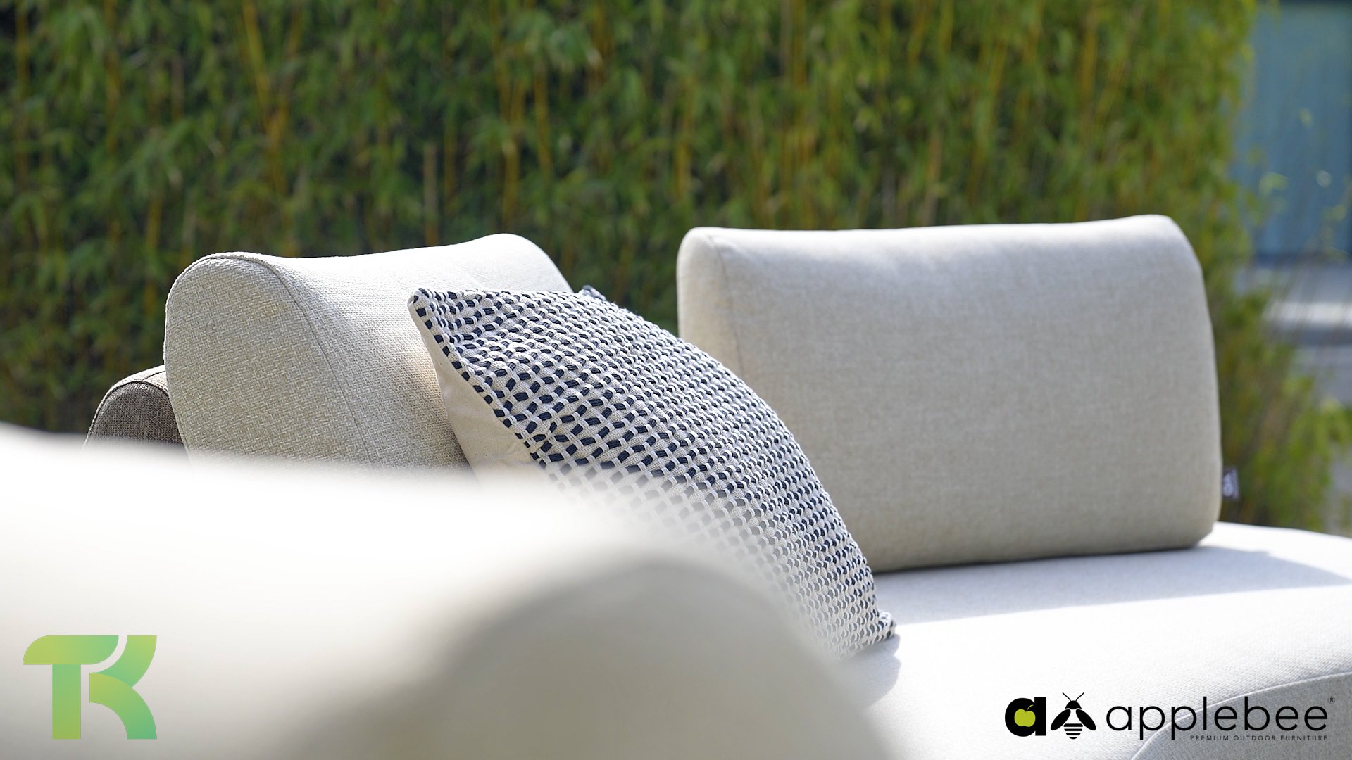 The sleek frame is crafted from high-quality, powder-coated aluminum in the warm, chic Bronze color. A color that harmonizes perfectly with the natural tones of your garden. The cushions are in Cotton Flower, a soft, natural shade that exudes tranquility and combines beautifully with the bronze and brown accents. The upholstery is made of olefin with Apple Bee's renowned BeeWett® technology. This makes them not only extremely soft and colorfast, but also weather-resistant. After a rain shower, the cushions dry again in no time thanks to the unique drainage structure.