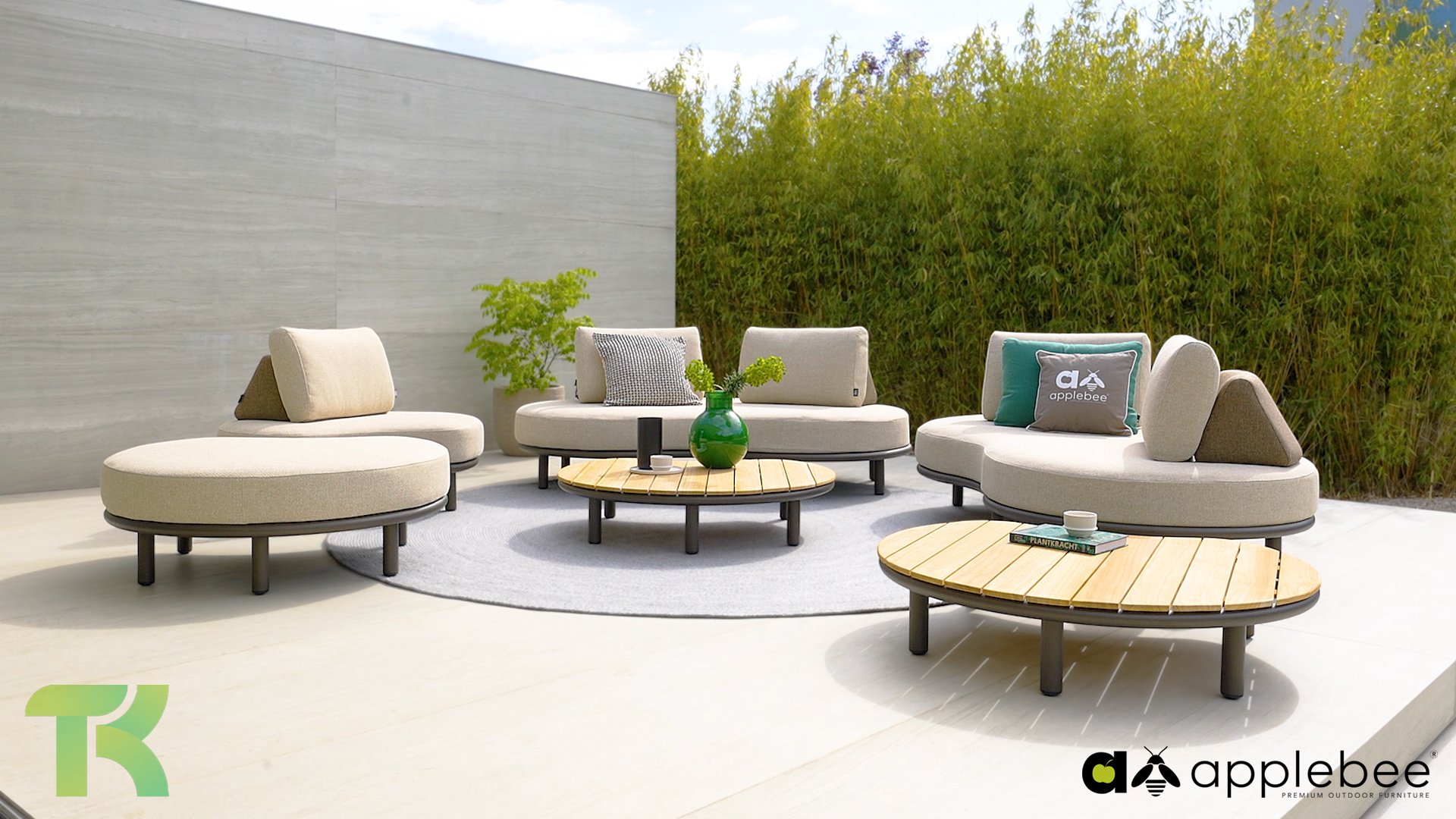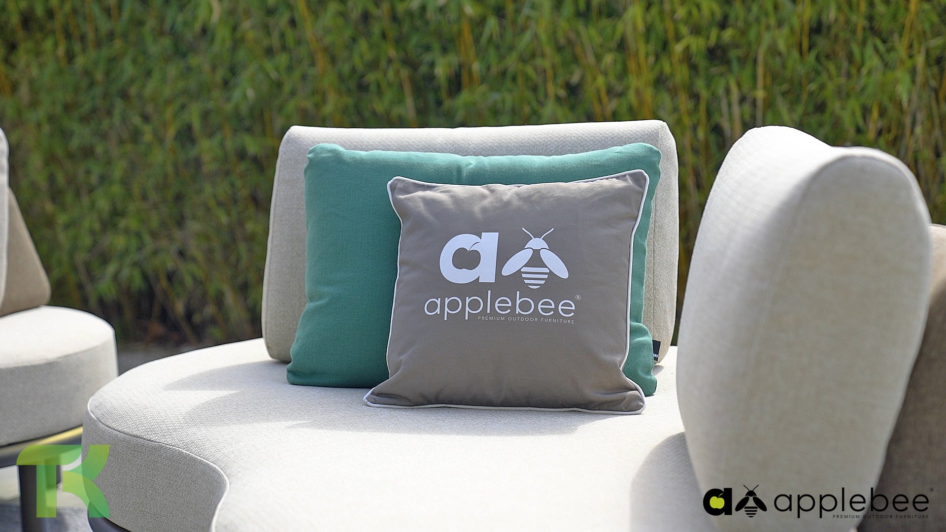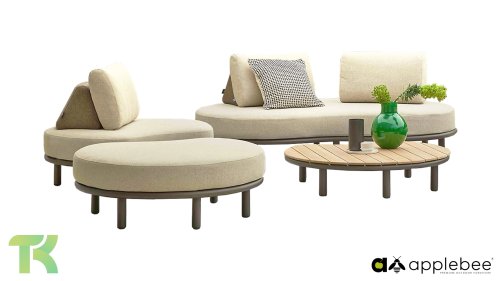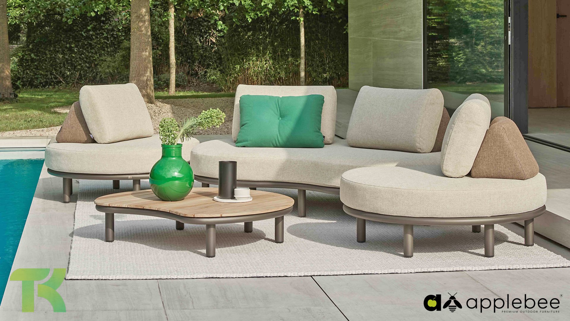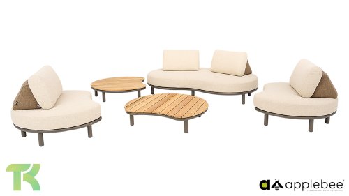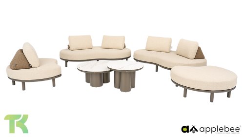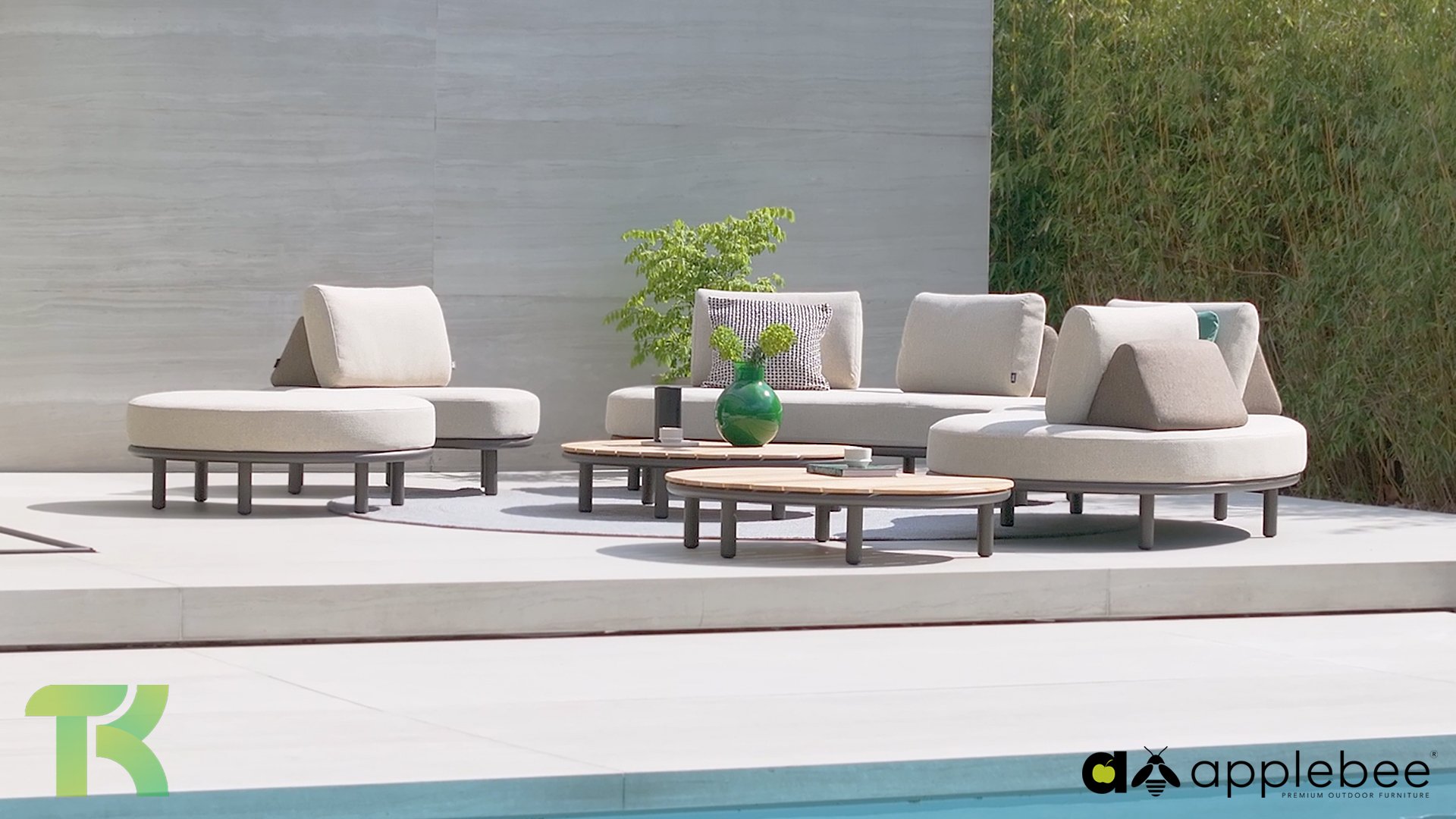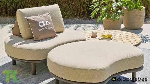 The sleek frame is crafted from high-quality, powder-coated aluminum in the warm, chic Bronze color. A color that harmonizes perfectly with the natural tones of your garden. The cushions are in Cotton Flower, a soft, natural shade that exudes tranquility and combines beautifully with the bronze and brown accents. The upholstery is made of olefin with Apple Bee's renowned BeeWett® technology. This makes them not only extremely soft and colorfast, but also weather-resistant. After a rain shower, the cushions dry again in no time thanks to the unique drainage structure.