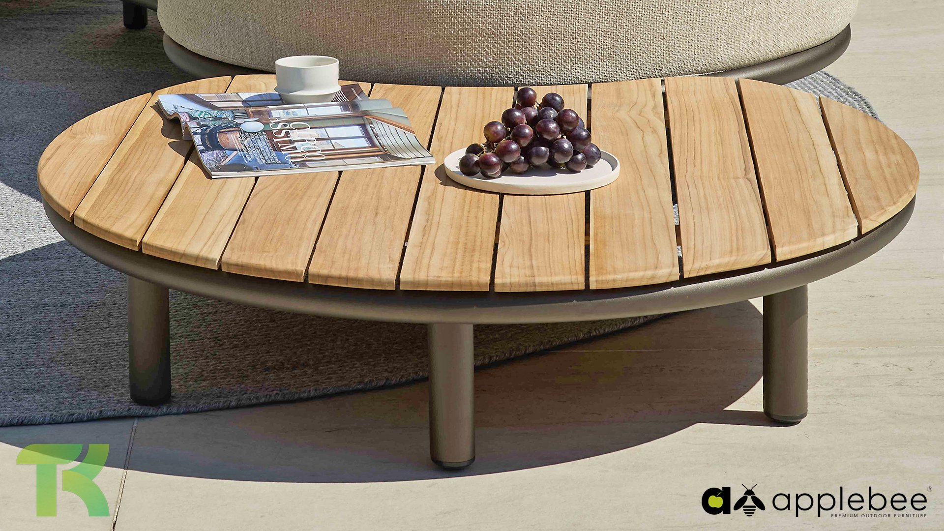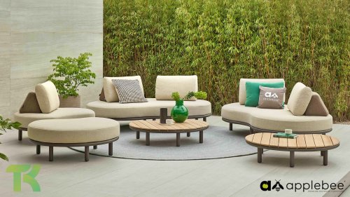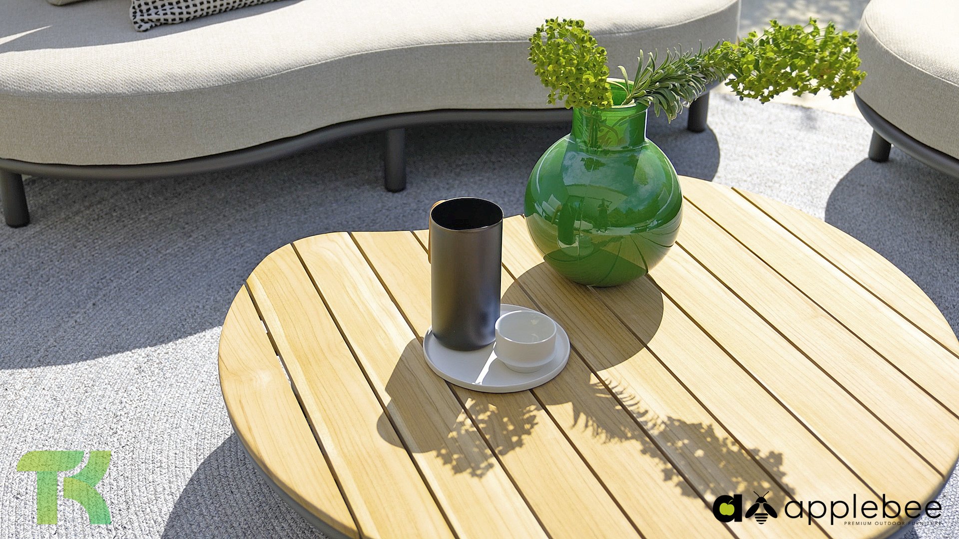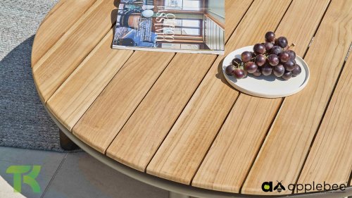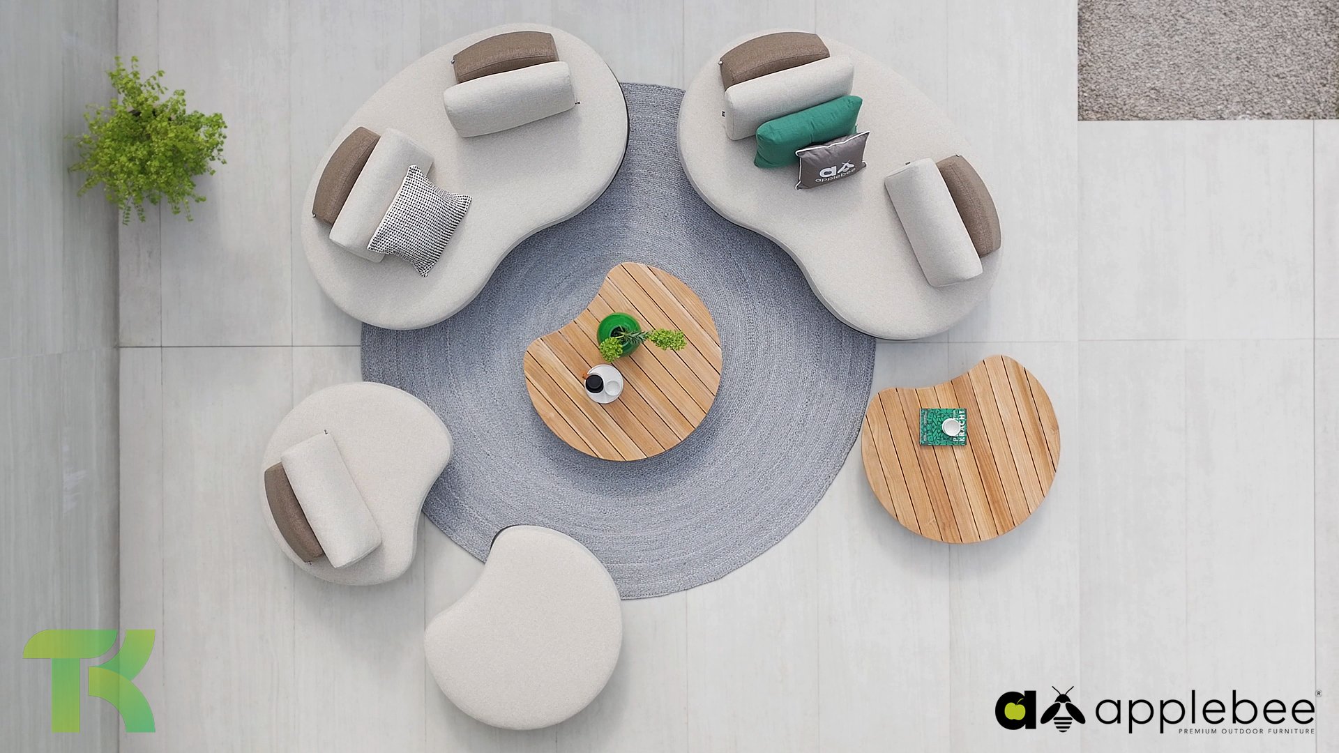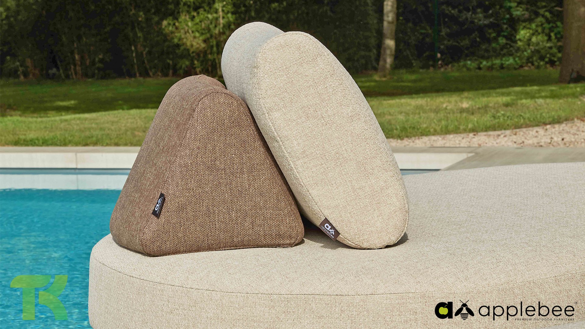 The sleek frame is crafted from high-quality, powder-coated aluminum in the warm, chic Bronze color. A color that harmonizes perfectly with the natural tones of your garden. The cushions are in Cotton Flower, a soft, natural shade that exudes tranquility and combines beautifully with the bronze and brown accents. The upholstery is made of olefin with Apple Bee's renowned BeeWett® technology. This makes them not only extremely soft and colorfast, but also weather-resistant. After a rain shower, the cushions dry again in no time thanks to the unique drainage structure.