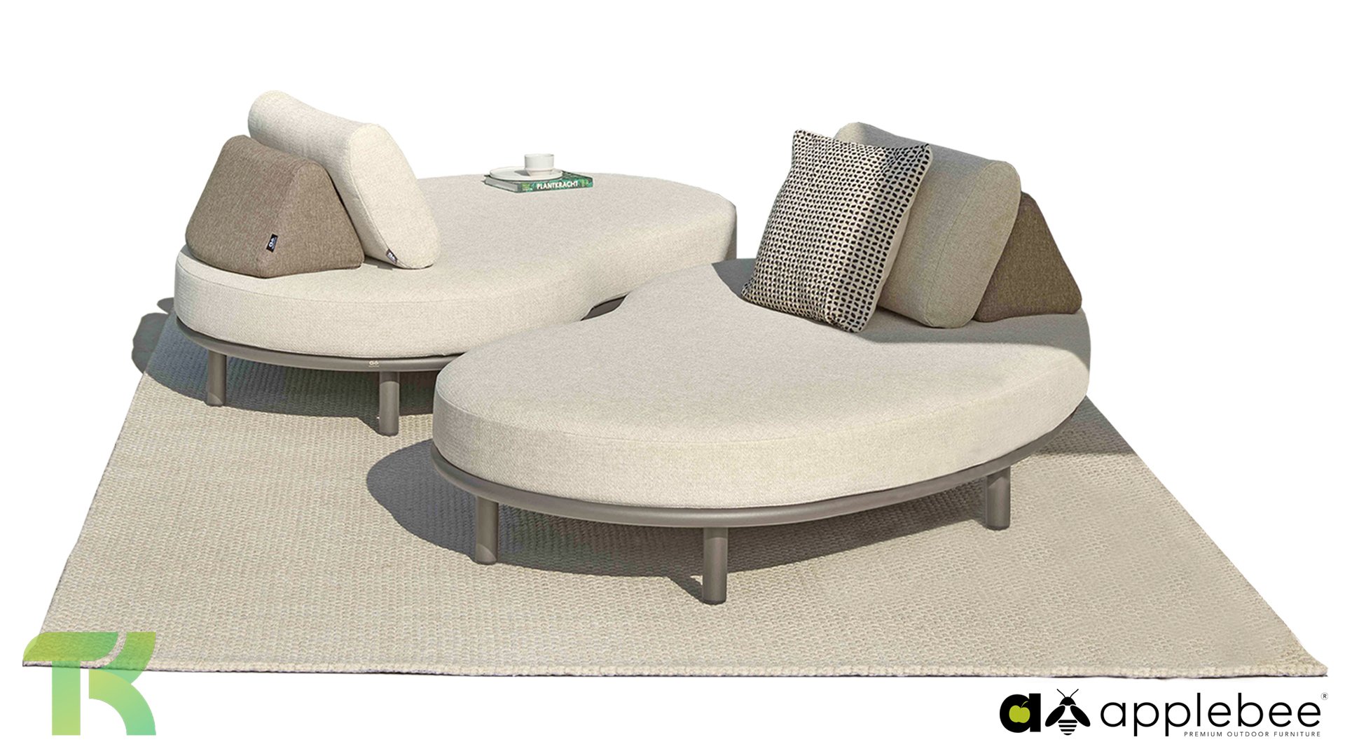 The Apple Bee Moon Island lounge set breaks with the traditional straight lines of garden furniture. The soft, rounded shapes instantly give your patio a modern and inviting look. What makes this set truly unique is its complete freedom of movement: the backrests are not attached to the frame. Thanks to the weighted back, the stylish brown backrests stay firmly in place without sliding. This allows you to fully customize your preferred seating position: directly across from each other for a pleasant conversation, or across the sofa for a moment of ultimate relaxation.