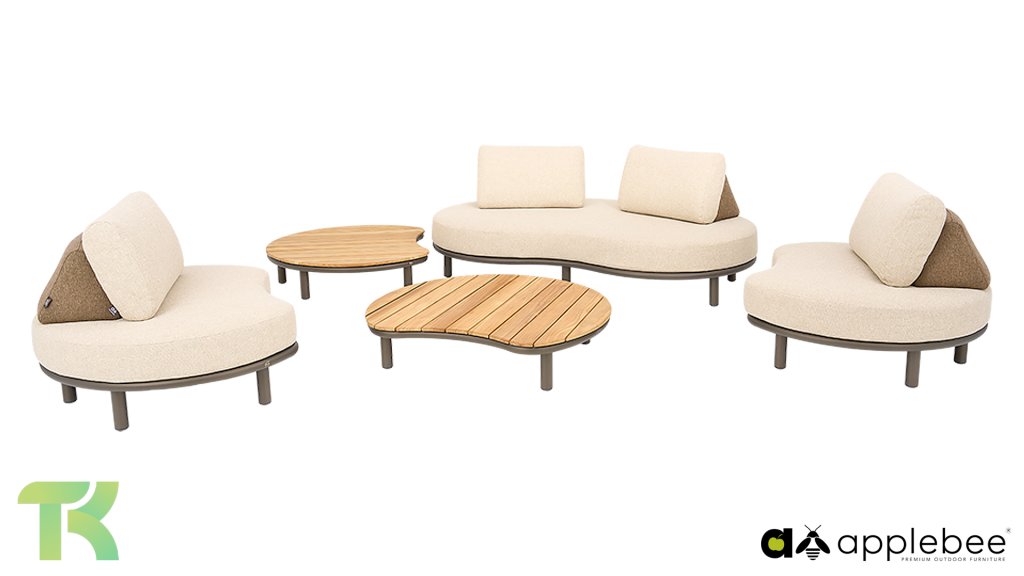 The sleek frame is crafted from high-quality, powder-coated aluminum in the warm, chic Bronze color. A color that harmonizes perfectly with the natural tones of your garden. The cushions are in Cotton Flower, a soft, natural shade that exudes tranquility and combines beautifully with the bronze and brown accents. The upholstery is made of olefin with Apple Bee's renowned BeeWett technology. This makes them not only extremely soft and colorfast, but also weather-resistant. After a rain shower, the cushions dry in no time thanks to their unique drainage structure. Experience the comfort of the future and give your garden the upgrade it deserves.