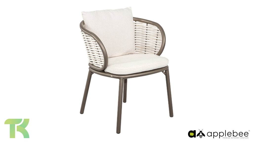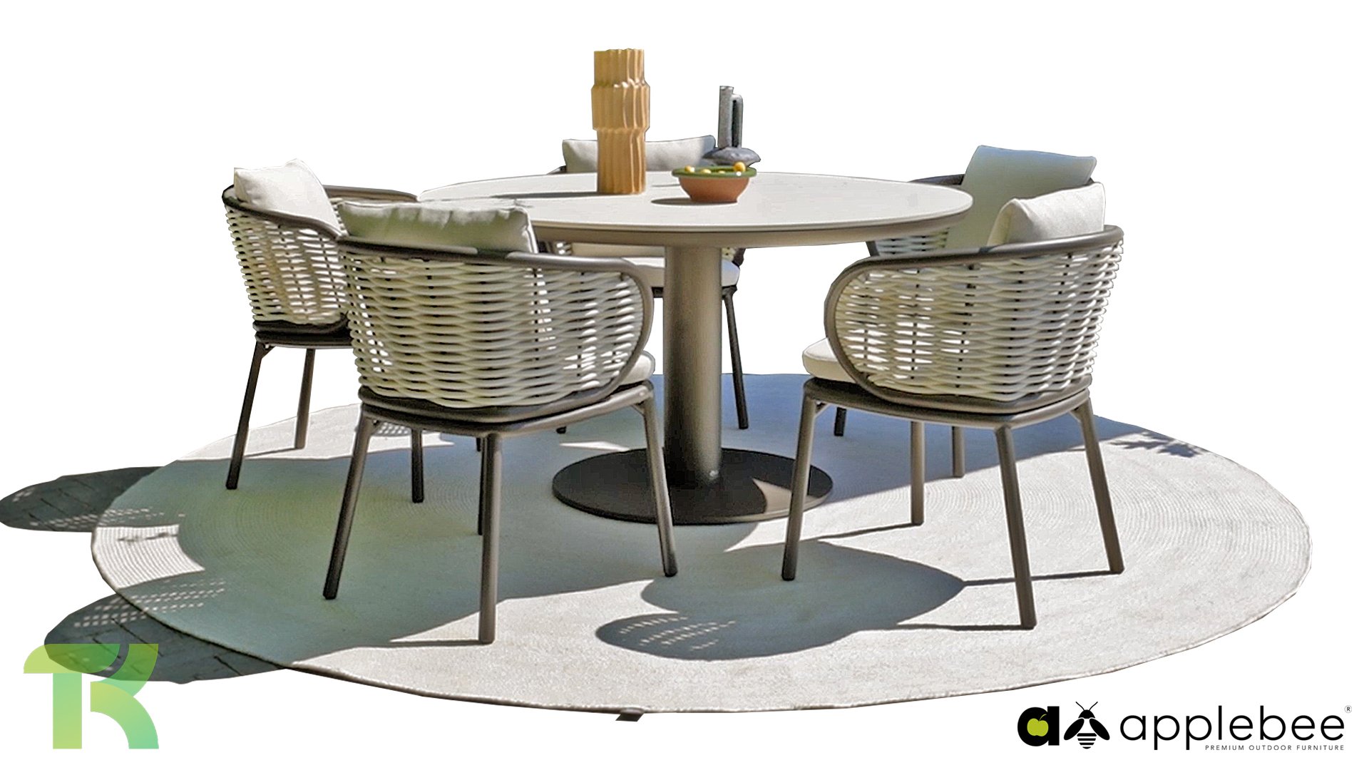 Apple Bee is characterized by the use of special Biculair® wickerwork, originally developed for professional applications in the hospitality industry. This Biculair® wickerwork is a lifelike, sustainable alternative to rattan. This highly durable synthetic rattan fiber (HDPE) is completely weatherproof, colorfast, recyclable, and therefore an environmentally friendly choice. The appearance and performance of the furniture remain unaffected by European weather conditions, and the colors retain their natural vibrancy. The superior quality of this wickerwork, verified by the Netherlands Organisation for Applied Scientific Research (TNO), is clearly demonstrated compared to other comparable materials.