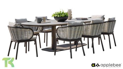 The Apple Bee Pine Key Bronze Dining, a masterpiece of organic design that effortlessly combines a robust character with an industrial look. This collection is specially designed for those who want to dine outdoors as stylishly as they do indoors.