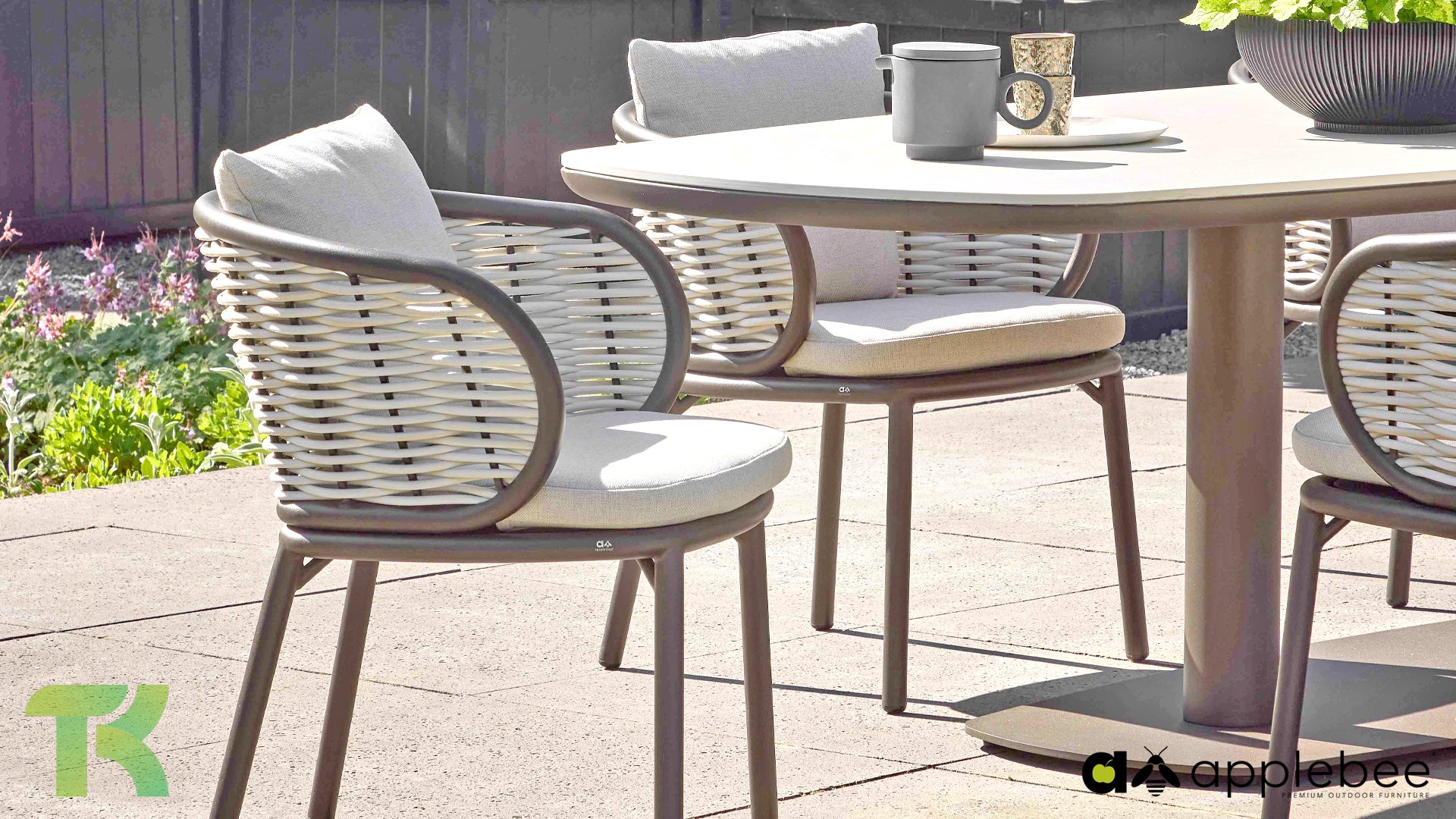 - Plenty of options: The Pine Key dining series is available in the colors Bronze and Oyster. Want to complete the set? A matching lounge set is also available in the same color schemes.