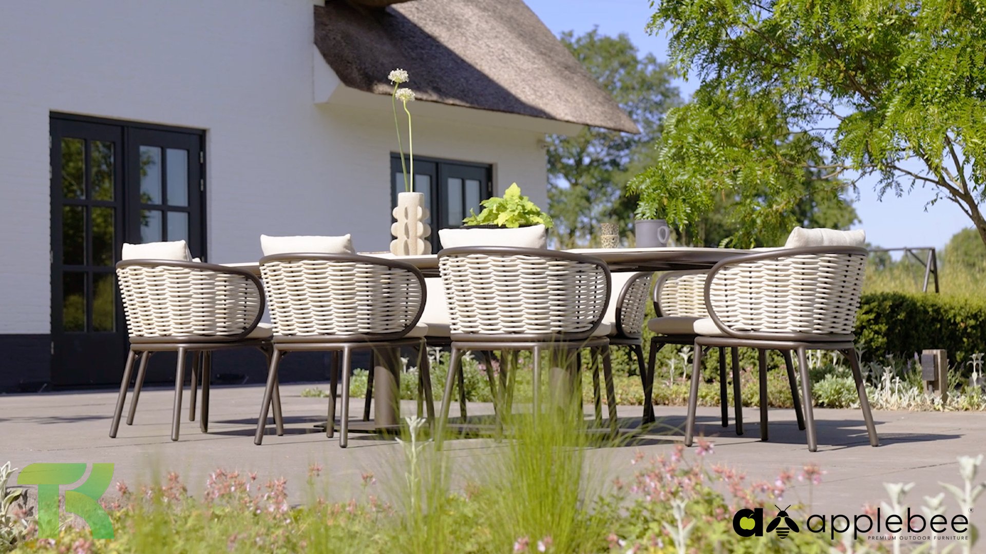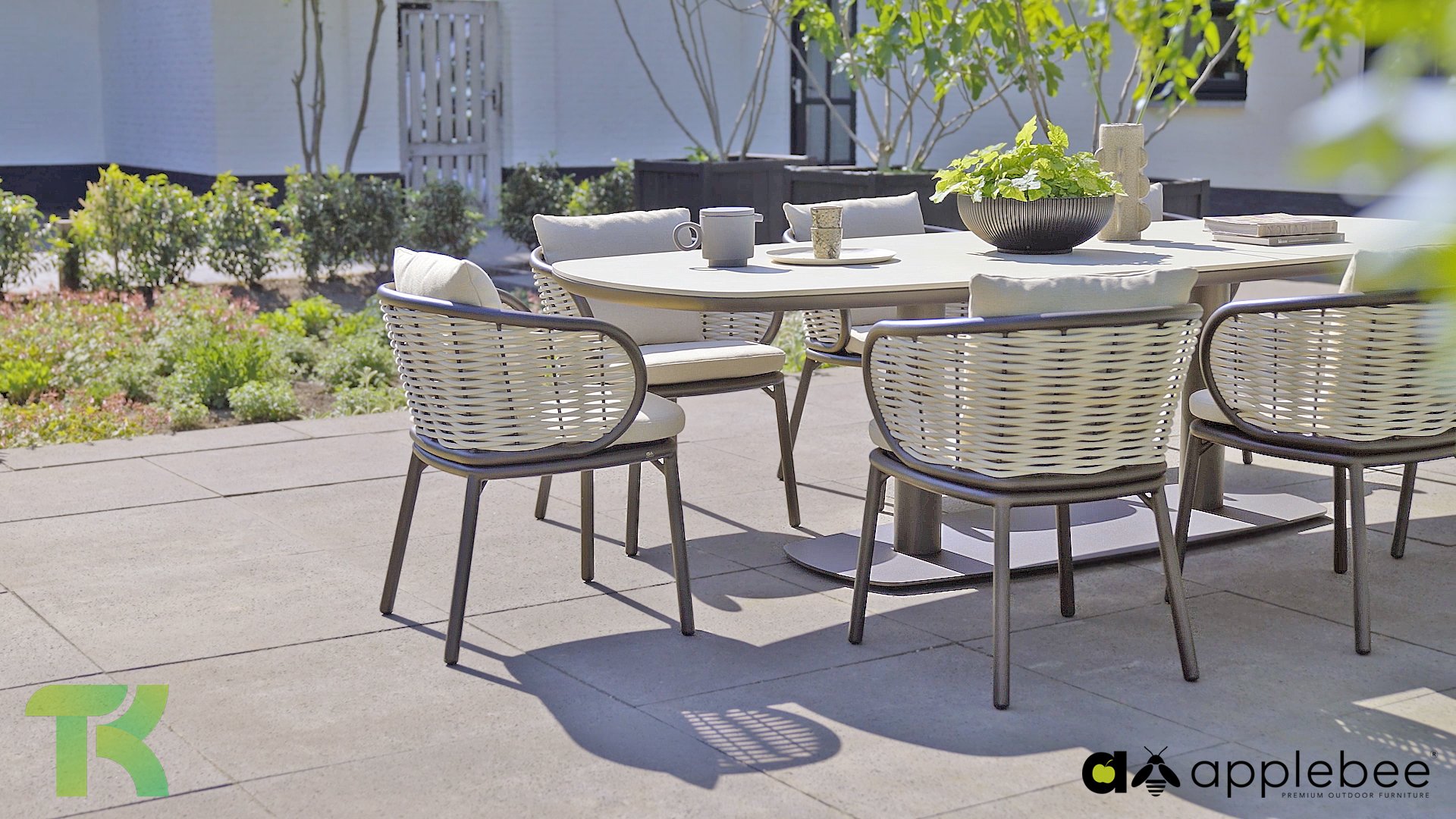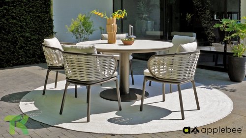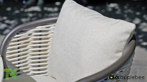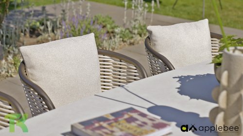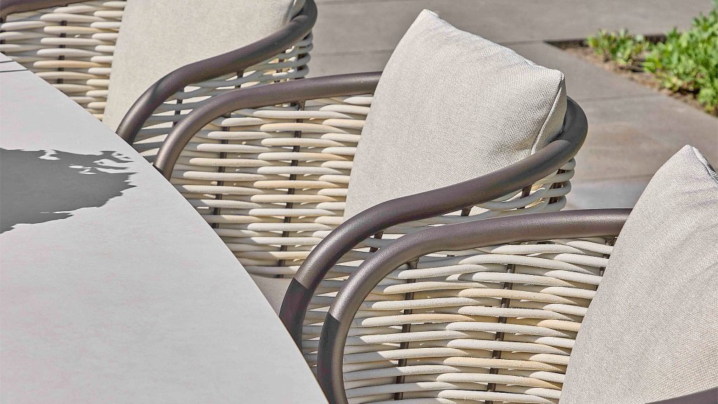 The backrest is artfully woven with thick, rope-like threads that give the chair a unique and open character. To complete the seating comfort, the chair is equipped with luxury cushions in the natural color Nature. Thanks to the unique BeeWett® technology, you don't have to worry about a rain shower; the cushions are weather-resistant and dry extremely quickly.