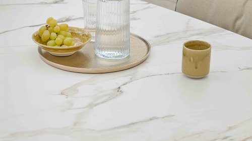 The Melville dining table by Apple Bee is the ultimate masterpiece for the garden or patio. The true eye-catcher is the top, crafted from state-of-the-art Sintered Stone. This innovative material is not only beautiful to look at but also offers ultimate functionality: it is exceptionally scratch, stain, and heat resistant, ideal for intensive use and carefree outdoor living. This premium design is built on a sleek yet extremely stable powder-coated aluminum base.