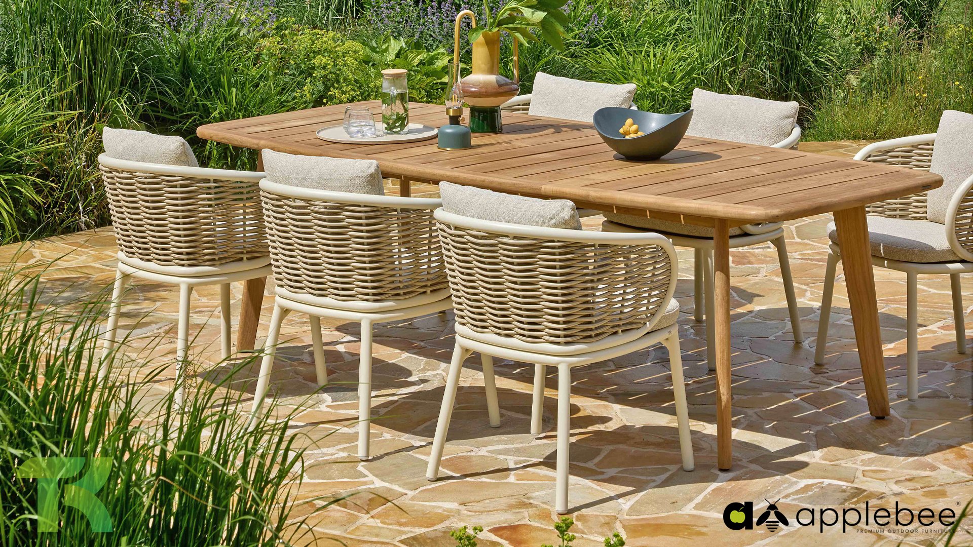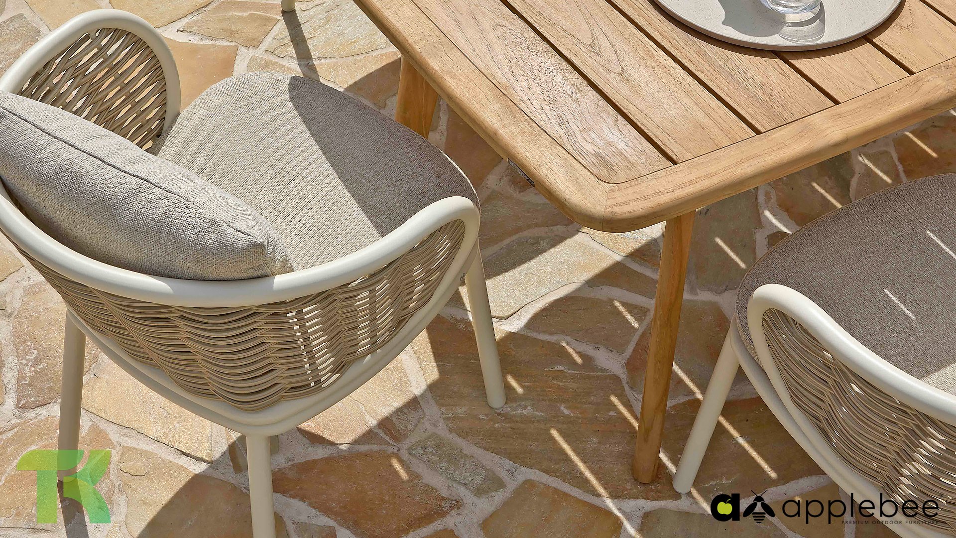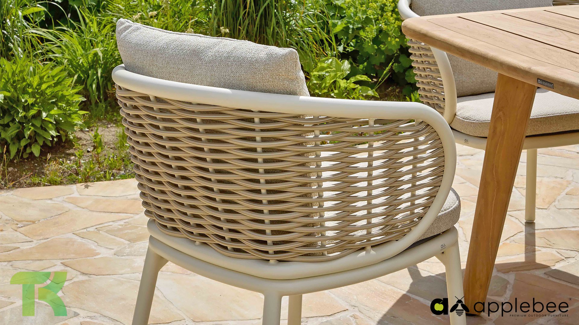 It's not just about aesthetics; comfort has also been considered. The chair invites you to dine for hours thanks to its comfortable cushions in the soft Cotton Flower color. Naturally, this version also features Apple Bee's smart BeeWett® technology. This allows the cushions to quickly wick away moisture, preventing mold and mildew.
