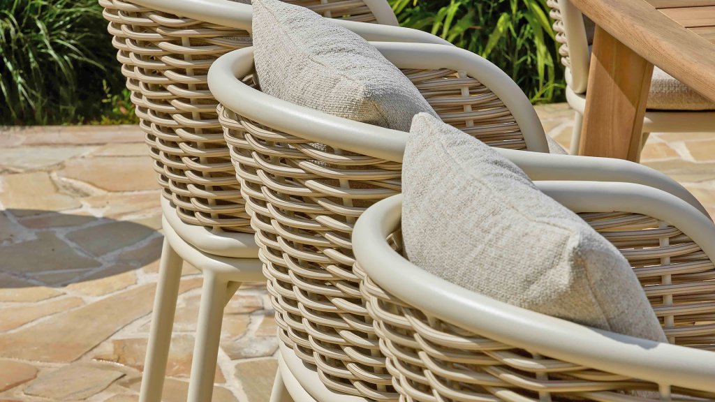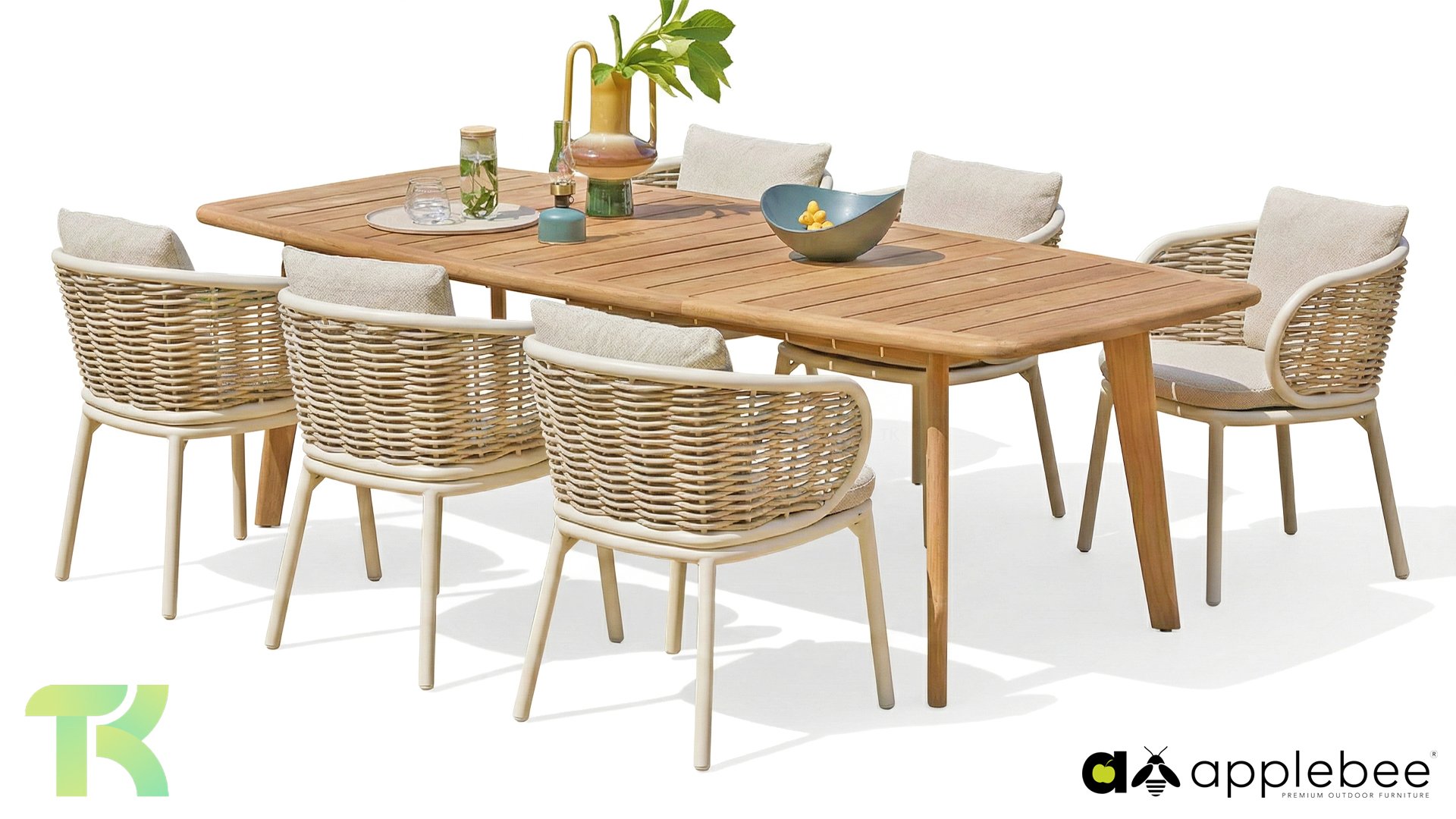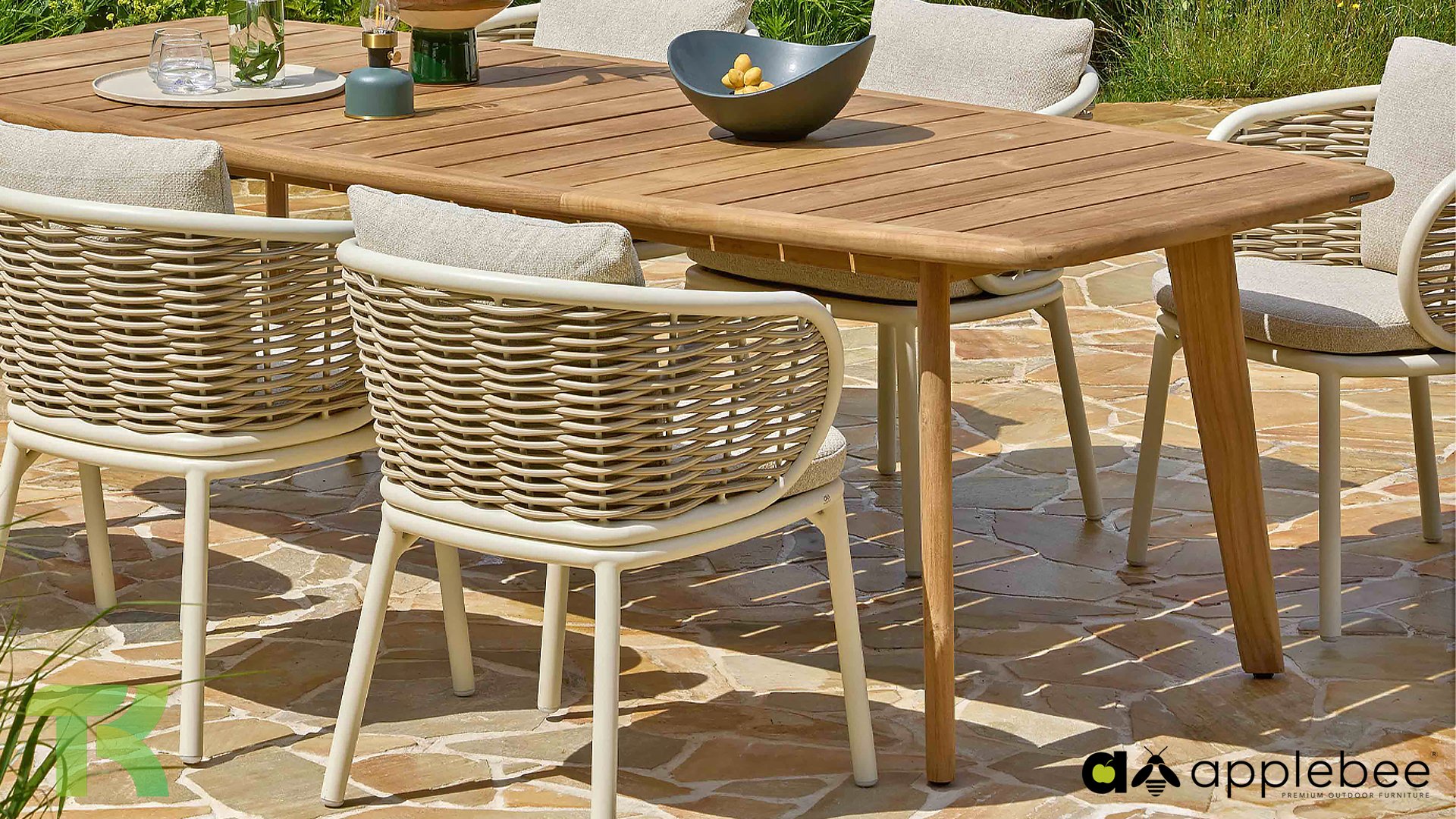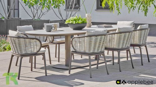 It's not just about aesthetics; comfort has also been considered. The chair invites you to dine for hours thanks to its comfortable cushions in the soft Cotton Flower color. Naturally, this version also features Apple Bee's smart BeeWett® technology. This allows the cushions to quickly wick away moisture, preventing mold and mildew.