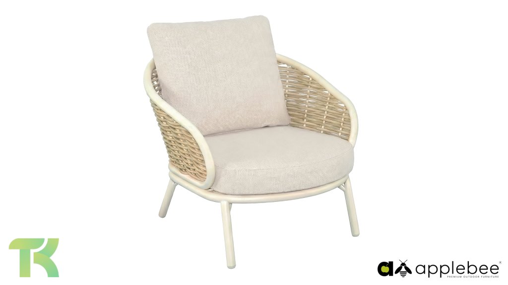 Apple Bee is characterized by the use of special Biculair® wickerwork, originally developed for professional applications in the hospitality industry. This Biculair® wickerwork is a lifelike, sustainable alternative to rattan. This highly durable synthetic rattan fiber (HDPE) is completely weatherproof, colorfast, recyclable, and therefore an environmentally friendly choice. The appearance and performance of the furniture remain unaffected by European weather conditions, and the colors retain their natural vibrancy. The superior quality of this wickerwork, verified by the Netherlands Organisation for Applied Scientific Research (TNO), is clearly demonstrated compared to other comparable materials.