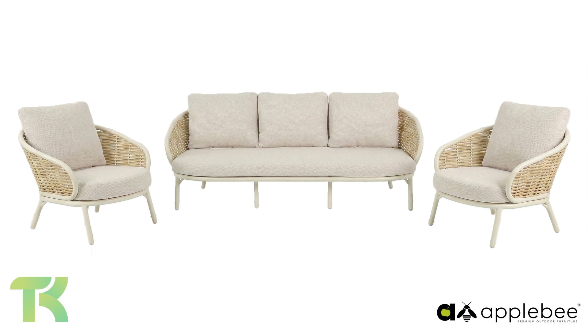Apple Bee is characterized by the use of special Biculair® wickerwork, originally developed for professional applications in the hospitality industry. This Biculair® wickerwork is a lifelike, sustainable alternative to rattan. This highly durable synthetic rattan fiber (HDPE) is completely weatherproof, colorfast, recyclable, and therefore an environmentally friendly choice. The appearance and performance of the furniture remain unaffected by European weather conditions, and the colors retain their natural vibrancy. The superior quality of this wickerwork, verified by the Netherlands Organisation for Applied Scientific Research (TNO), is clearly demonstrated compared to other comparable materials.