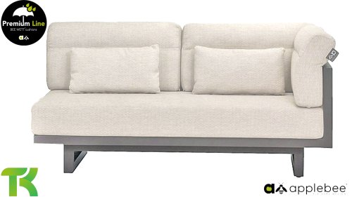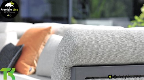 The arm and back cushions of the Santorini are special and slightly bend over the armrests. This adds a soft touch to the otherwise strict lines. It allows you to lie down comfortably. Comfortable lumbar cushions are included with the Santorini. This way, you can cozy up completely and even create a snug spot on the cooler days.