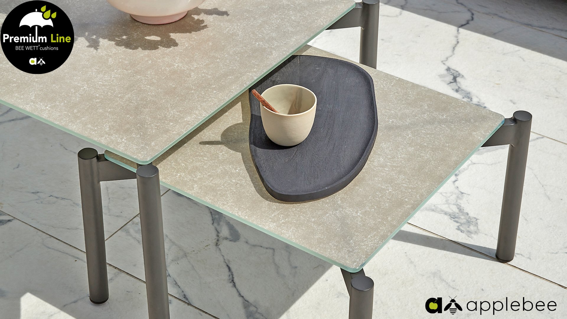 1 x Apple Bee St. Lucia coffee table 53x53xH30cm aluminum Quartz-Travertine