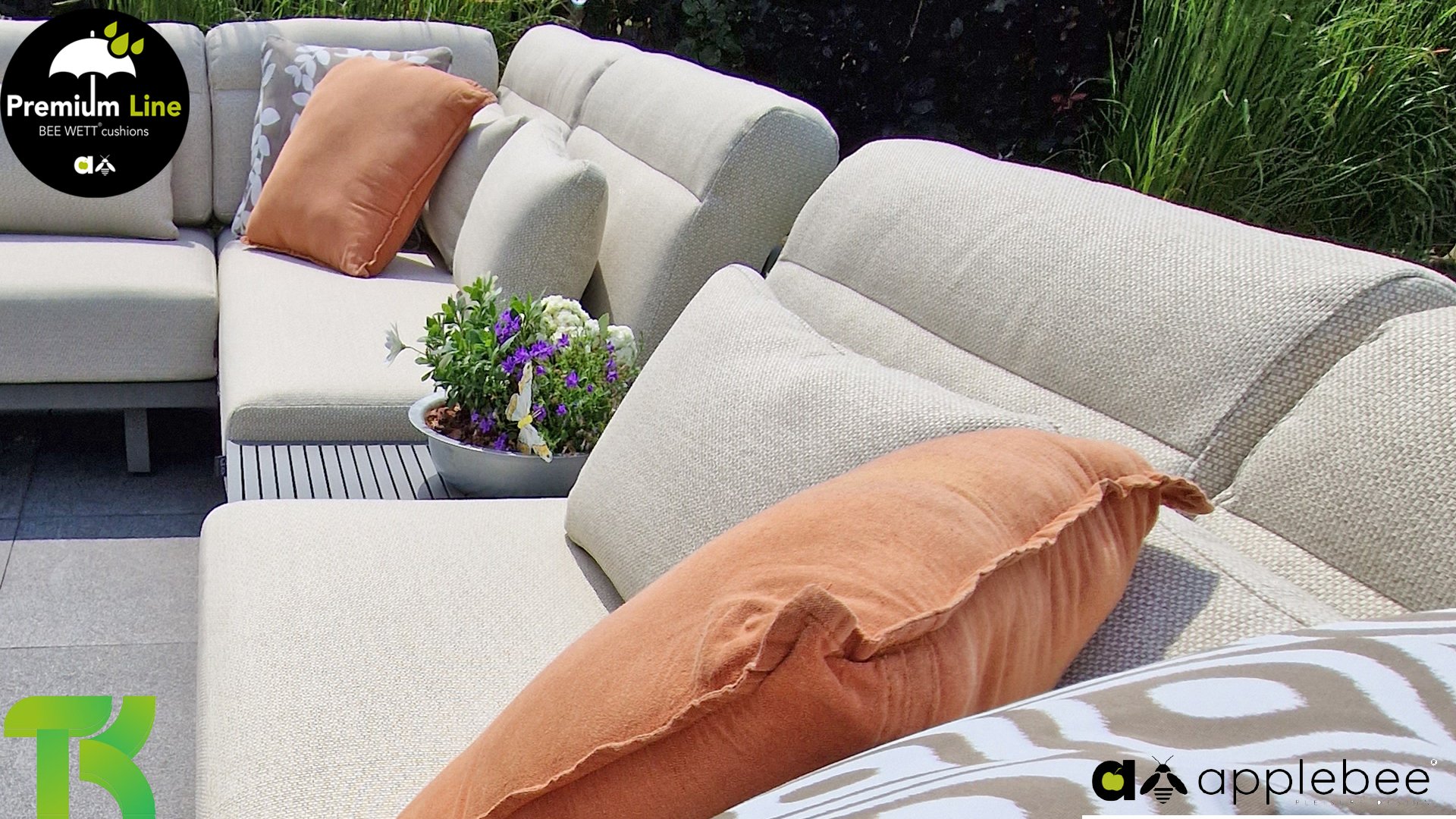 The AppleBee Bee Wett cushions are specially designed for weather protection. The removable cover is washable at temperatures up to 30°C. The open weave on the underside of the cushion ensures perfect drainage, meaning your Bee Wett cushion dries significantly faster than other cushions. Furthermore, the fabric is rot and mildew resistant, UV-resistant, moisture-resistant, soft, and comfortable. The cover is removable and washable.