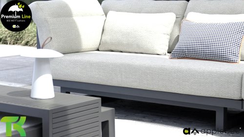 The arm and back cushions of the Santorini are special and slightly bend over the armrests. This adds a soft touch to the otherwise strict lines. It allows you to lie down comfortably. Comfortable lumbar cushions are included with the Santorini. This way, you can cozy up completely and even create a snug spot on the cooler days.