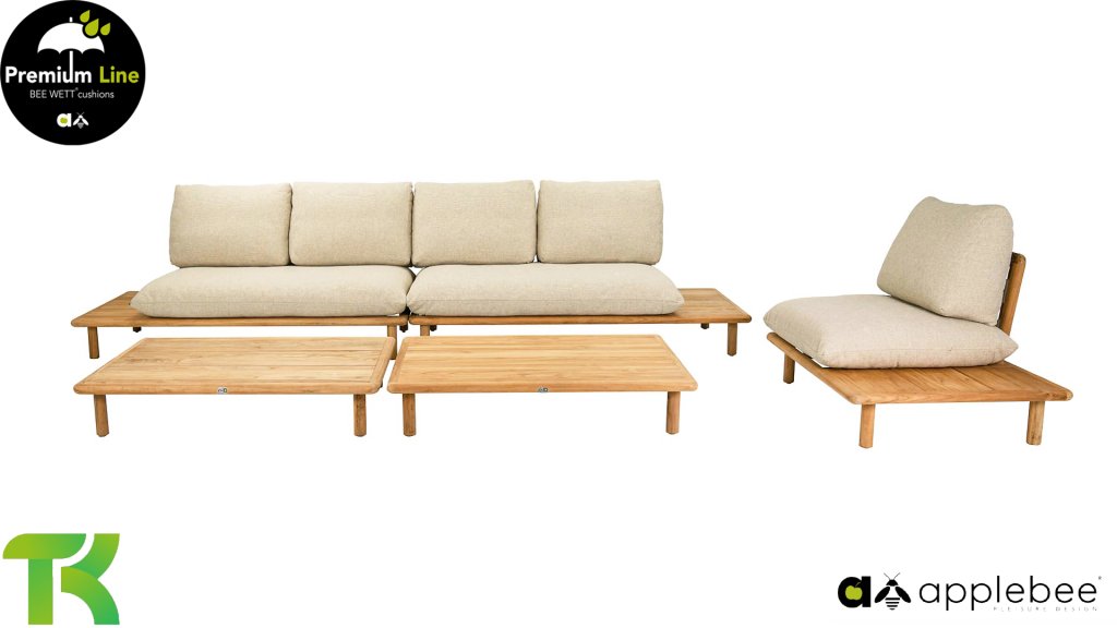 The Apple Bee Sling Lounge is a spacious teak lounge set with high seating comfort due to the extra thick cushions. An ideal lounge set to enjoy wonderful summer evenings. The Sling Lounge Set from Apple Bee is a spacious teak lounge set with high seating comfort due to the extra thick cushions. An ideal lounge set to enjoy wonderful summer evenings.