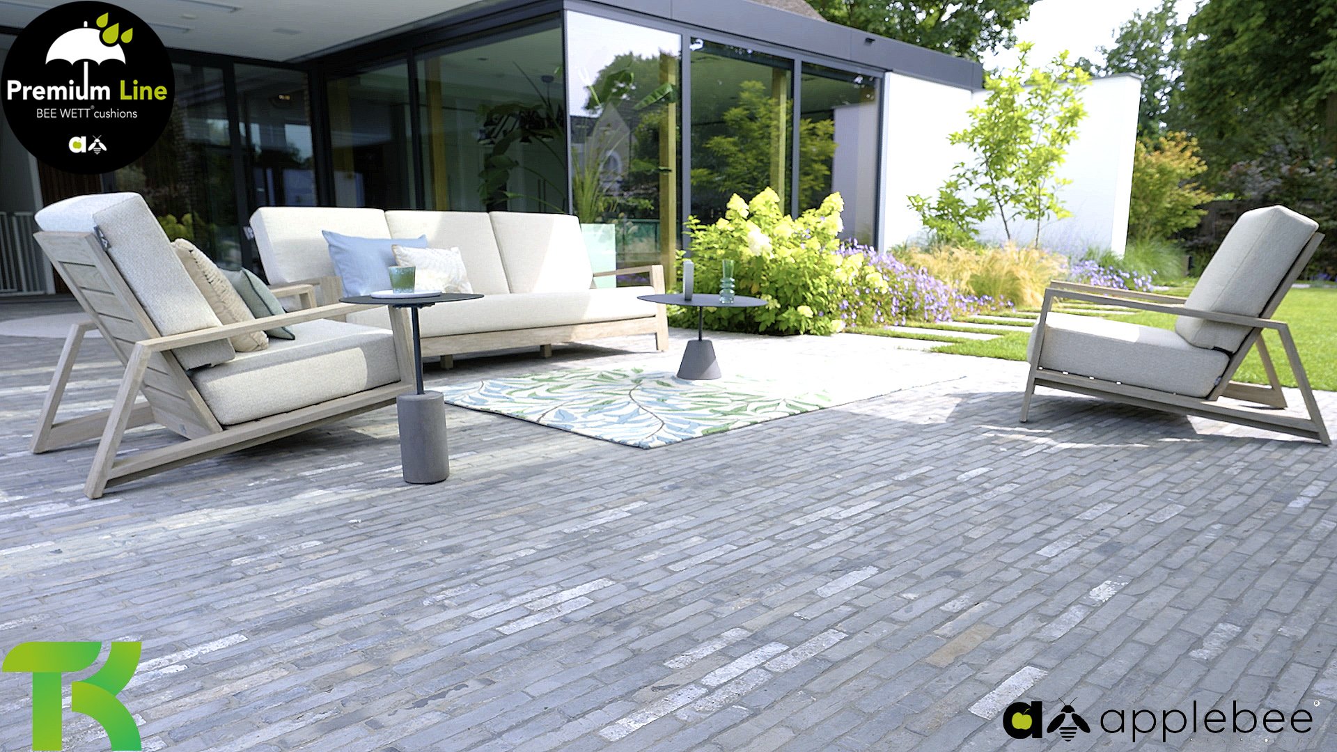 The Apple Bee Bee Wett cushions are special weather-resistant cushions. The removable cover is washable at a maximum of . The open weave on the underside of the cushion ensures perfect drainage. This means your Bee Wett cushion dries spectacularly faster than other cushions. Furthermore, the fabric is resistant to rot and mold, UV-resistant, moisture-repellent, soft, and comfortable. The cover has a zipper and is washable.