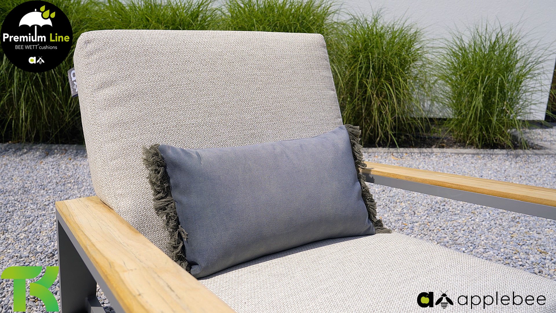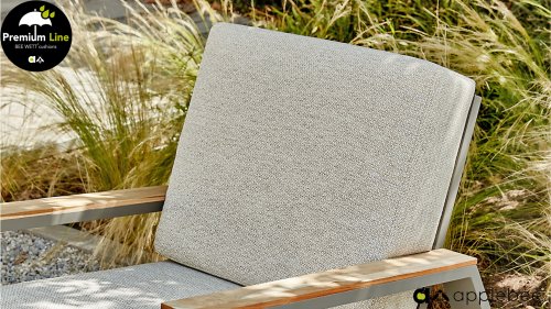 The Apple Bee Bee Wett cushions are special weather-resistant cushions. The removable cover is washable at a maximum of . The open weave on the underside of the cushion ensures perfect drainage. This means your Bee Wett cushion dries spectacularly faster than other cushions. Furthermore, the fabric is resistant to rot and mold, UV-resistant, moisture-repellent, soft, and comfortable. The cover has a zipper and is washable.