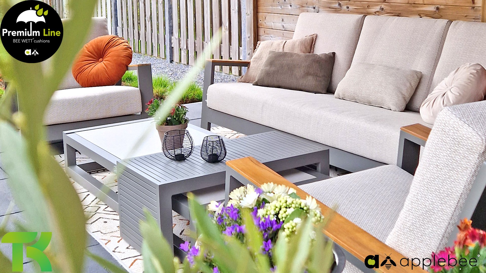 The Apple Bee Bee Wett cushions are special weather-resistant cushions. The removable cover is washable at a maximum of . The open weave on the underside of the cushion ensures perfect drainage. This means your Bee Wett cushion dries spectacularly faster than other cushions. Furthermore, the fabric is resistant to rot and mold, UV-resistant, moisture-repellent, soft, and comfortable. The cover has a zipper and is washable.