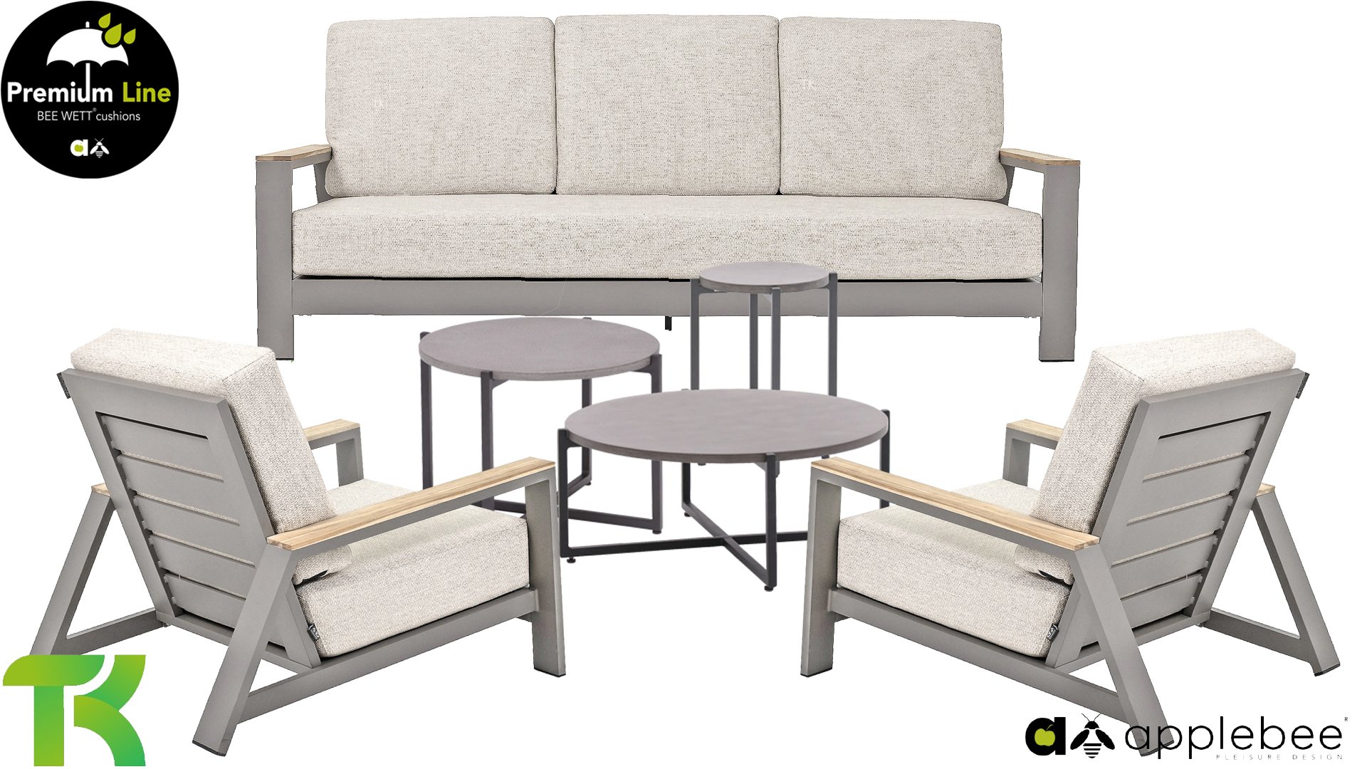 1 x Apple Bee Spring aluminum taupe 3-seater sofa