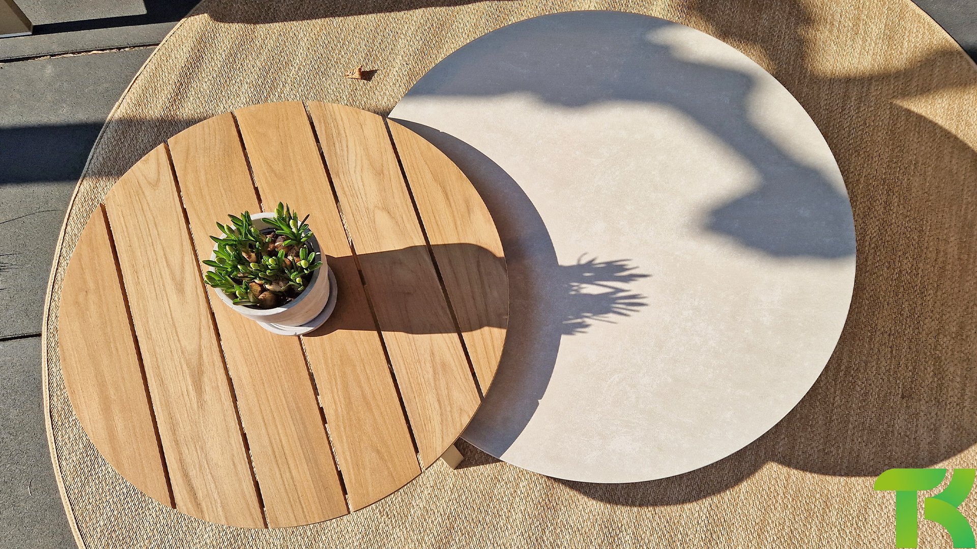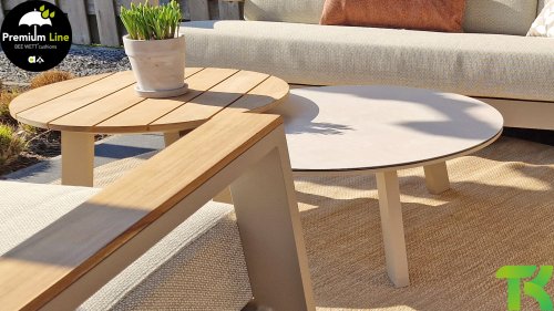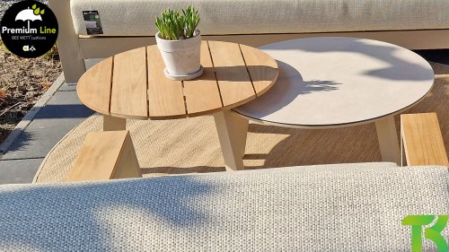 It takes 2 to tango Why choose 1 coffee table when you can have 2? At the Taste 4Seasons Emma coffee table set, we always give you one table with a teak top én one with a ceramic glass top. Choose the color that matches your lounge set: latte or anthracite.