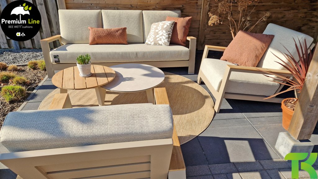 The Apple Bee Bee Wett cushions are special weather-resistant cushions. The removable cover is washable at a maximum of . The open weave on the underside of the cushion ensures perfect drainage. This means your Bee Wett cushion dries spectacularly faster than other cushions. Furthermore, the fabric is resistant to rot and mold, UV-resistant, moisture-repellent, soft, and comfortable. The cover has a zipper and is washable.