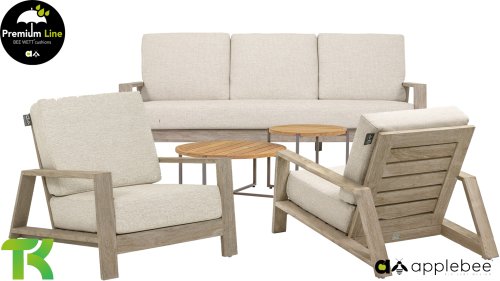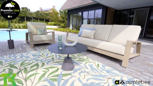 The furniture is entirely made of high-quality teak, so even if the set remains in your garden without cushions, it is still a sight to behold. A ton-sur-ton topper! With a few beautiful decorative pillows to your taste, you can instantly create your own style for your own 'nest in the sun.' Combine the set with the Lisa coffee tables or one of the other Apple Bee tables and let spring arrive.