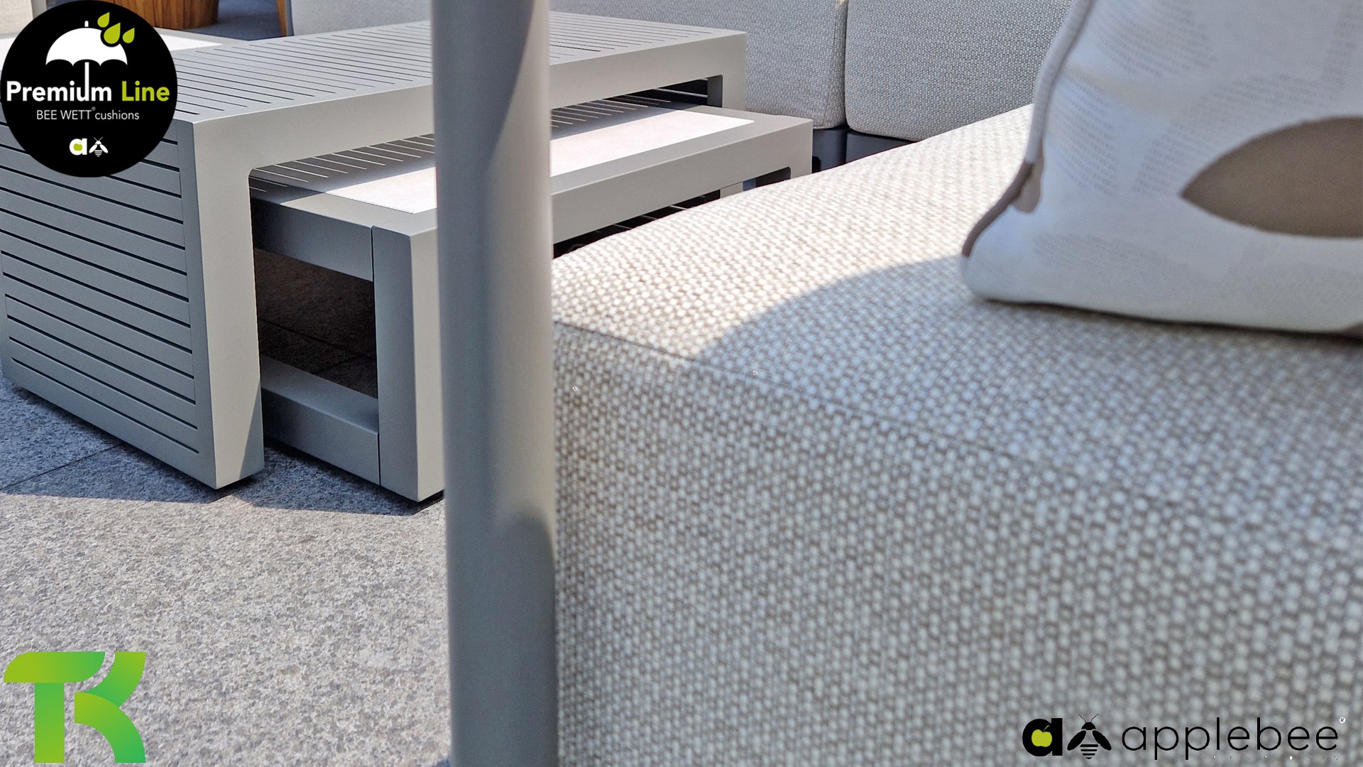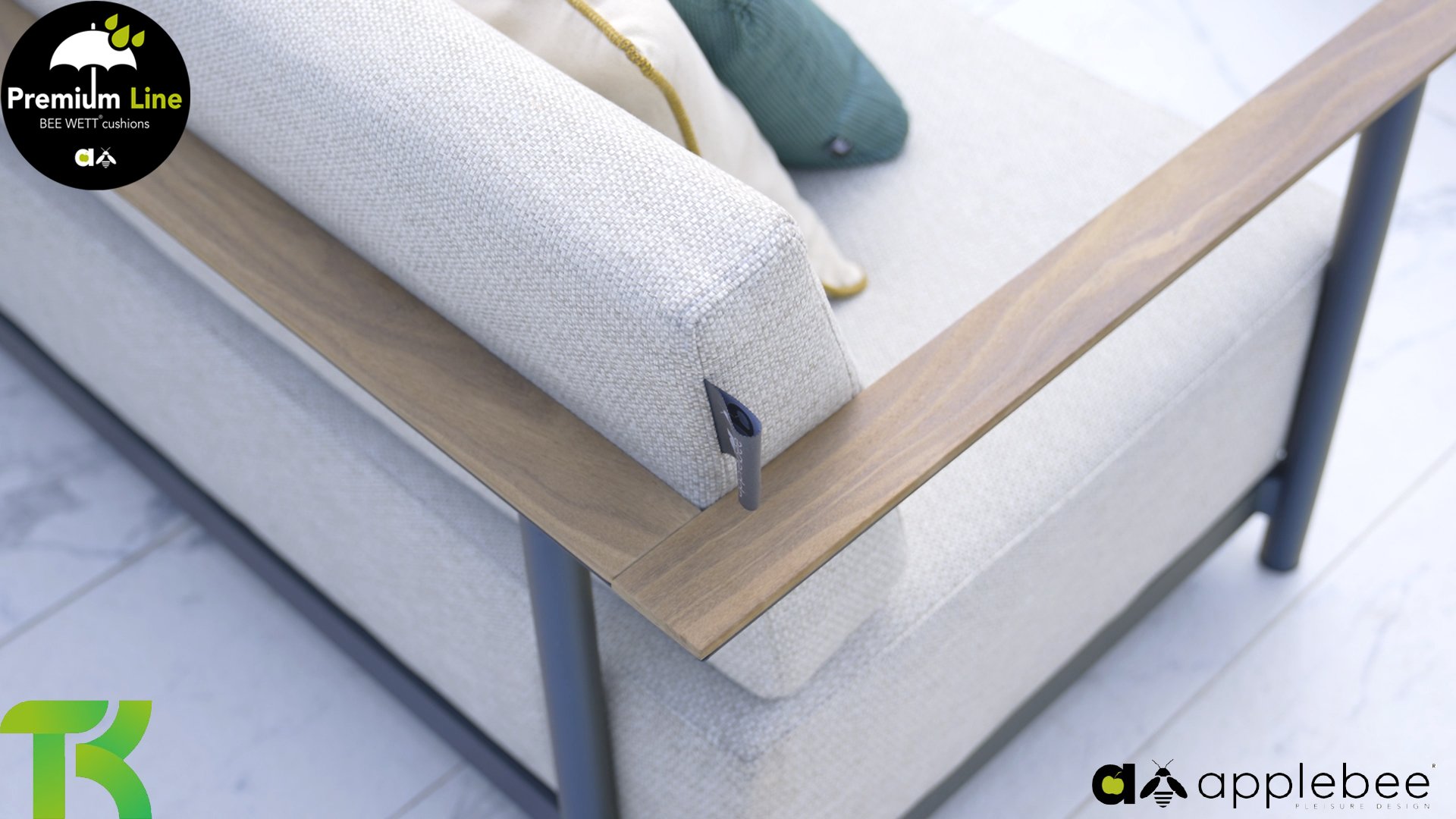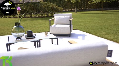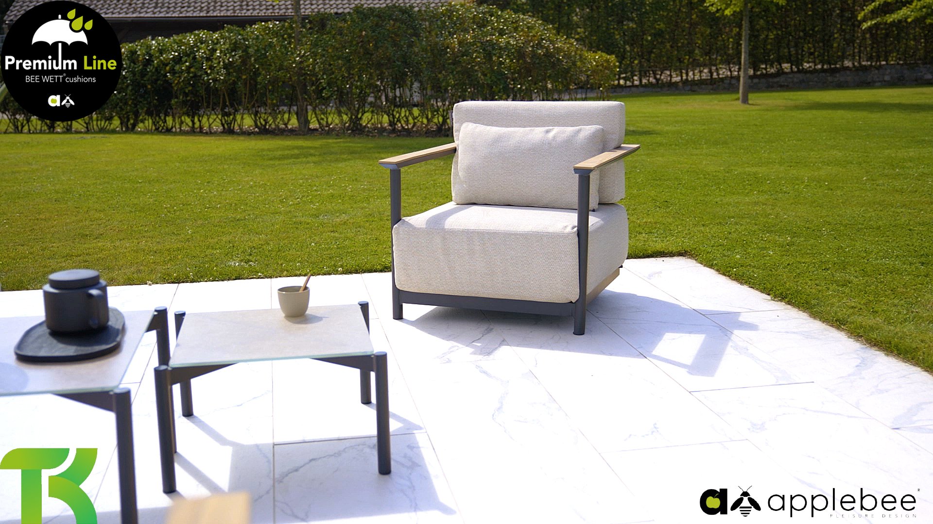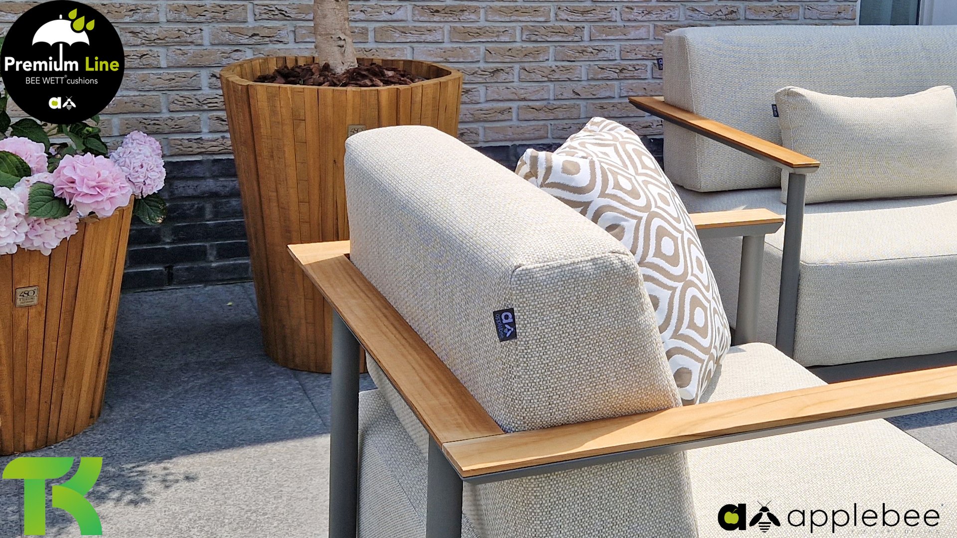 The Apple Bee Bee Wett cushions are special weather-resistant cushions. The removable cover is washable at a maximum of . The open weave on the underside of the cushion ensures perfect drainage. This means your Bee Wett cushion dries spectacularly faster than other cushions. Furthermore, the fabric is resistant to rot and mold, UV-resistant, moisture-repellent, soft, and comfortable. The cover has a zipper and is washable.