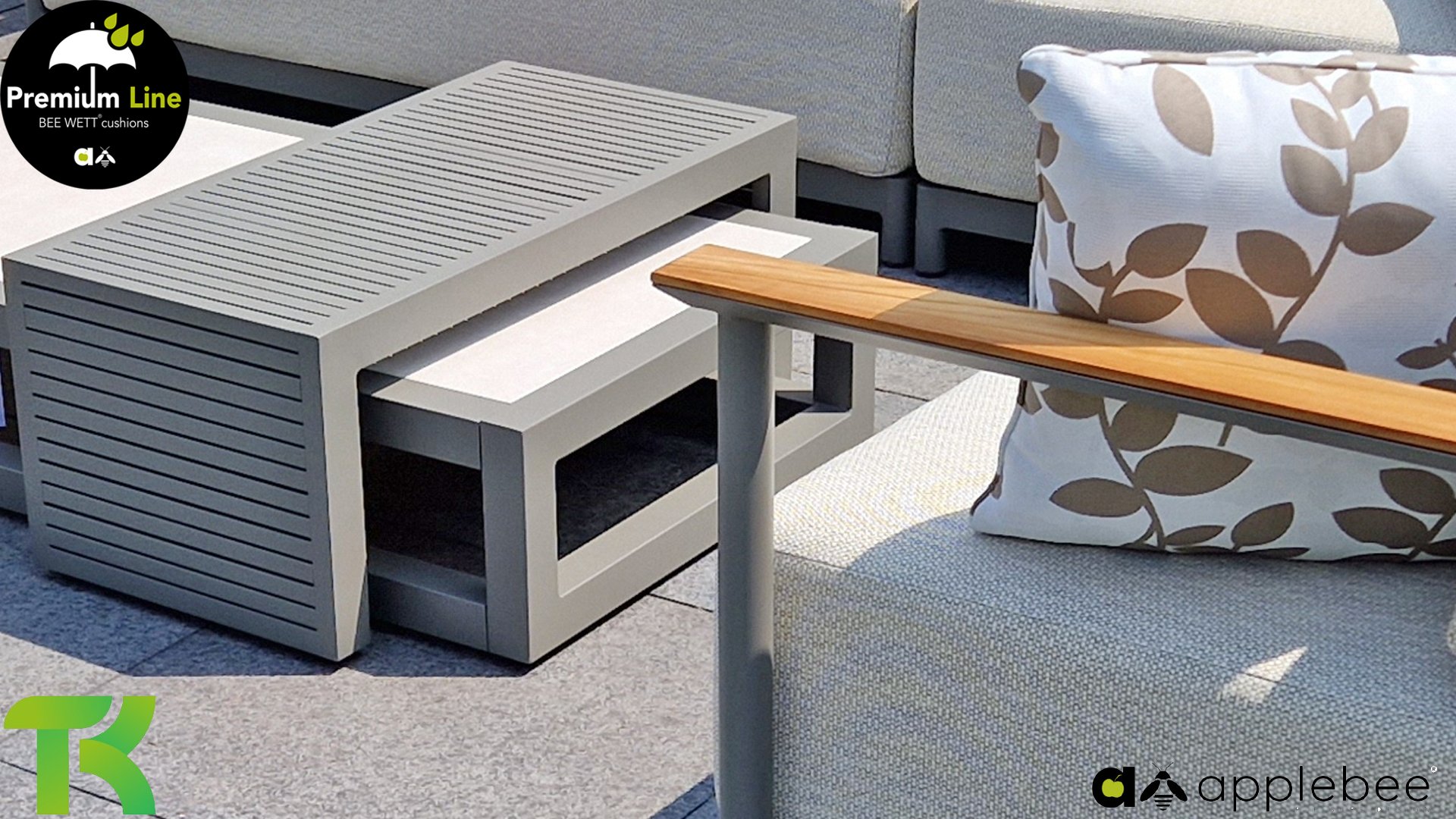 Apple Bee Lisa Coffee Table Set, equipped with a Light Weight Concrete (LWC) leg together with an aluminum top in the color Taupe. Simple yet fashionable! The Lisa coffee tables belong to the AppleBee Lisa Teak Lounge Set.