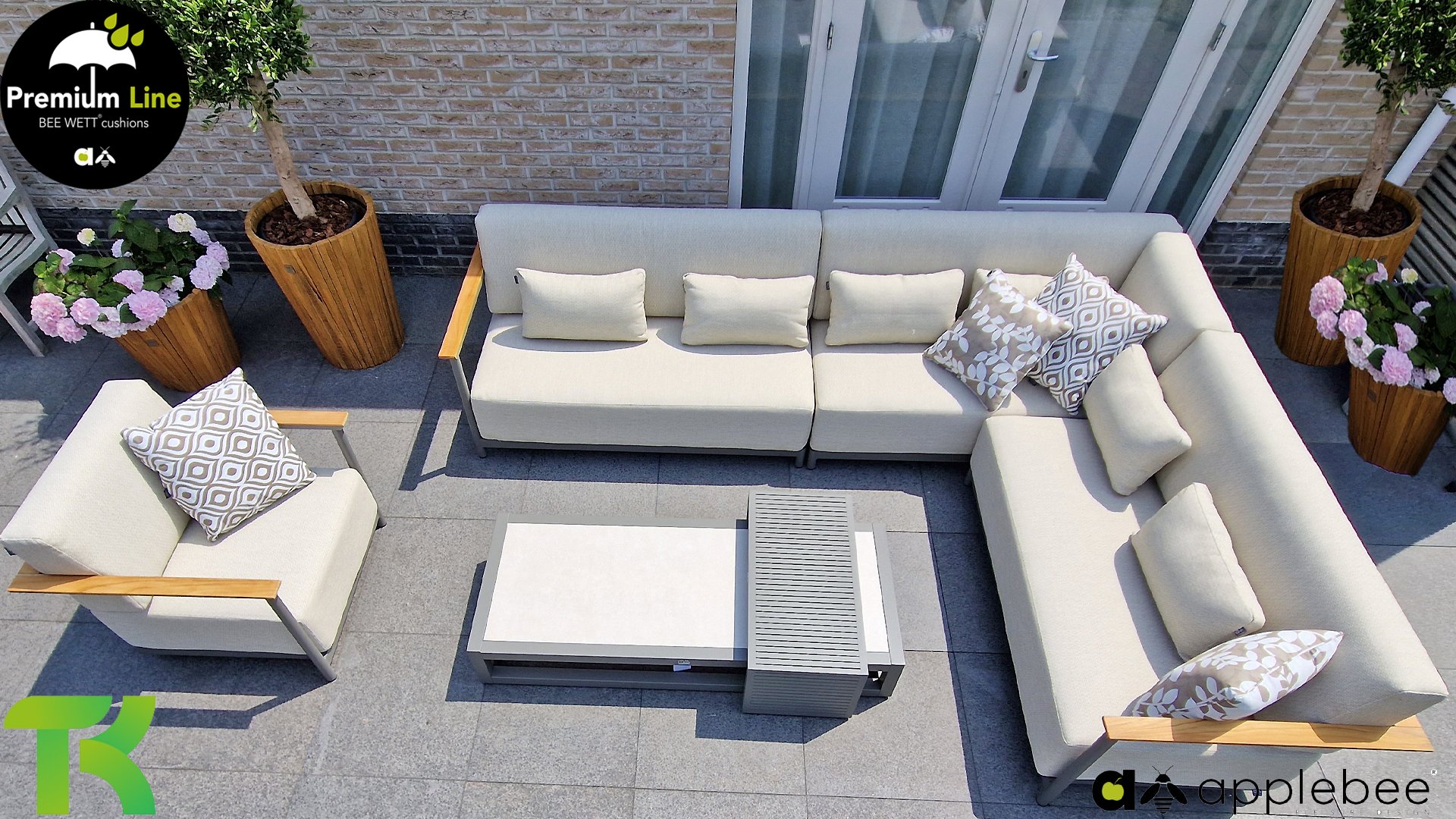 The Apple Bee Bee Wett cushions are special weather-resistant cushions. The removable cover is washable at a maximum of . The open weave on the underside of the cushion ensures perfect drainage. This means your Bee Wett cushion dries spectacularly faster than other cushions. Furthermore, the fabric is resistant to rot and mold, UV-resistant, moisture-repellent, soft, and comfortable. The cover has a zipper and is washable.
