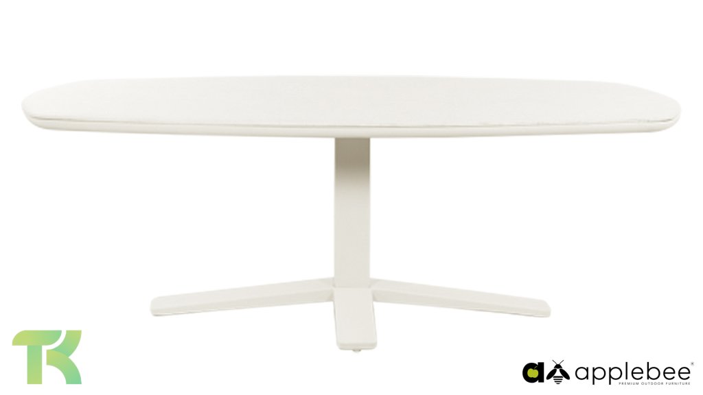 Enhance your outdoor space with the Zanzibar garden table from Apple Bee, a showcase of modern design and weatherproof quality. This stylish table features an elegant, false oval top (220x110cm) crafted from durable sintered stone, resting on a sleek, powder-coated aluminum base. The combination of these materials guarantees a long lifespan and makes the table ideal for any season.
