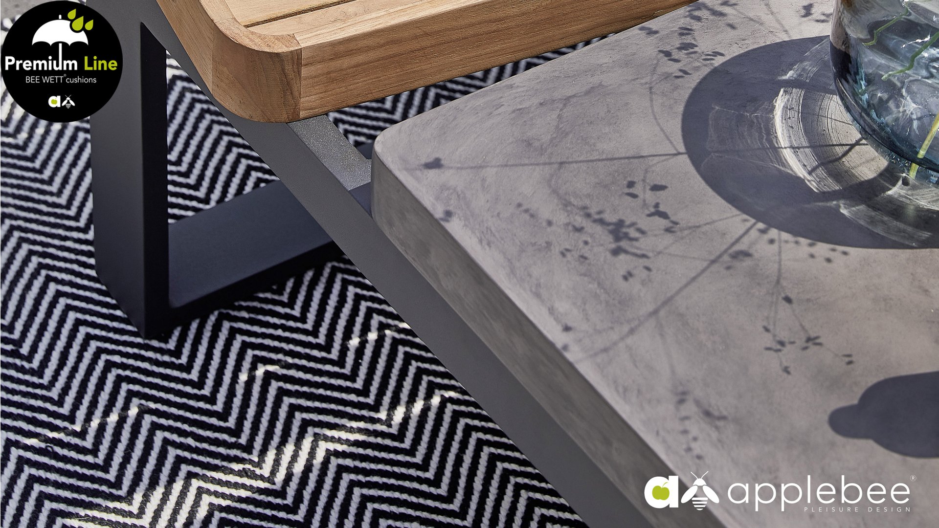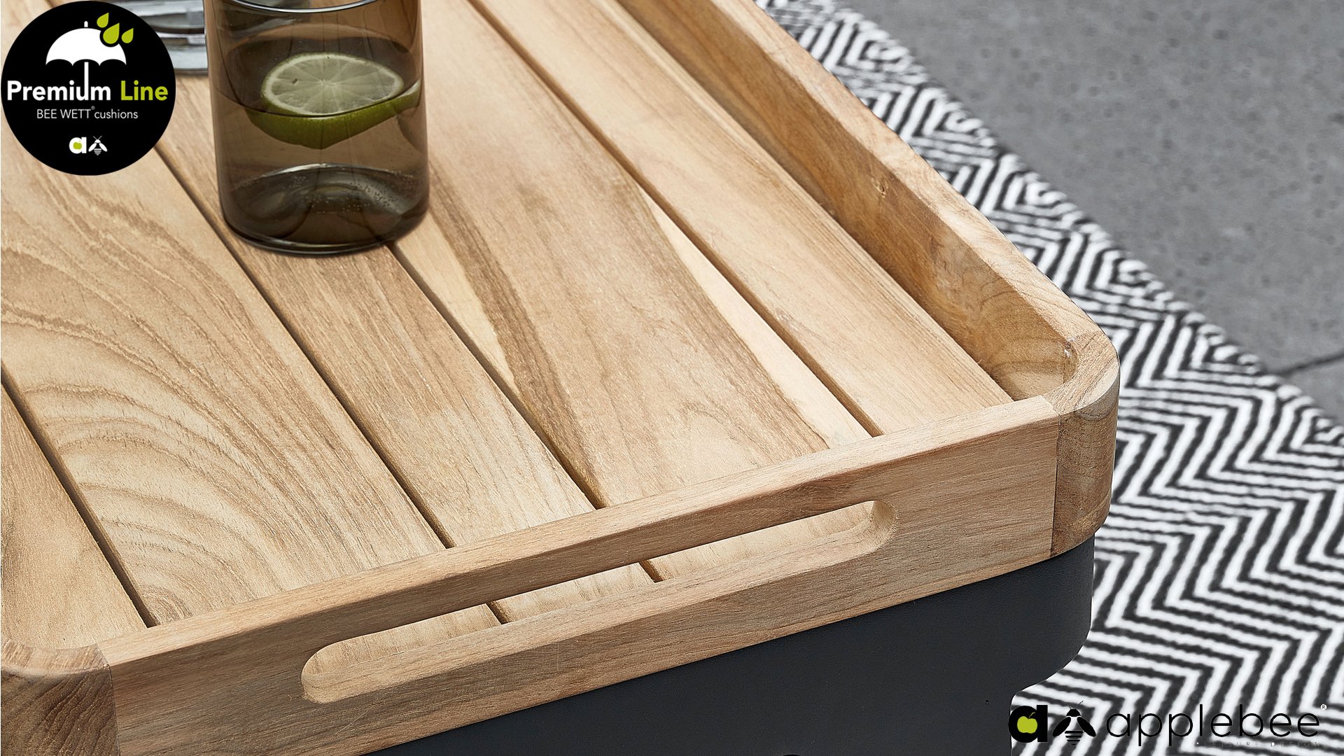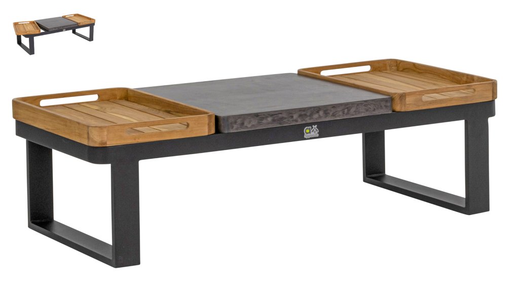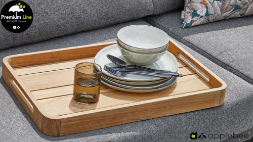 Not only is the modular arrangement of this Applebee Mura lounge set functional, but the coffee table is also practically designed. With a lightweight concrete tabletop in the center, the coffee table is completed with two removable teak trays on the sides. Super handy for serving food and drinks, for example! Or you can place the tray with drinks on the couch for stability, so you can comfortably stay in your position.