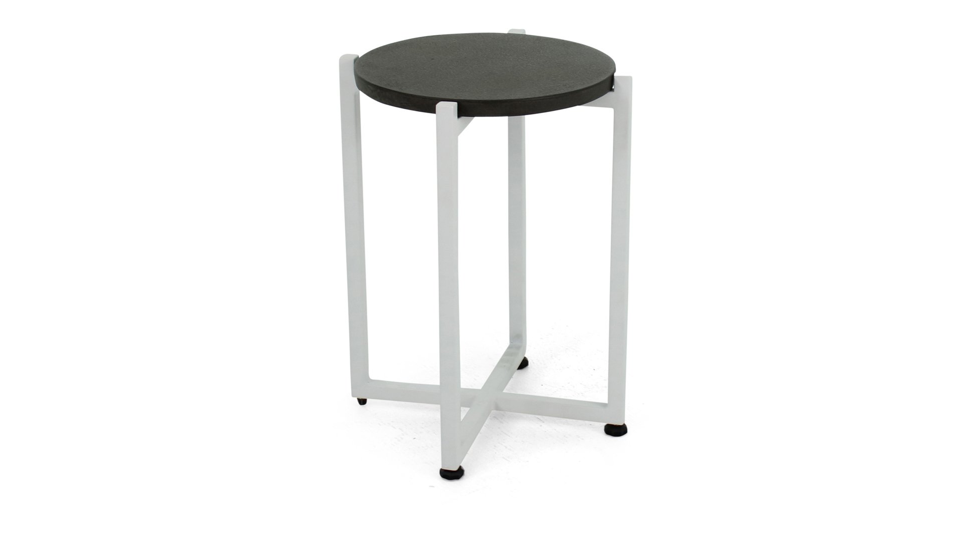 This stylish side table Soul is available in three different sizes. The round, slender shapes give the furniture a lively atmosphere. The materials used in these side tables are waterproof, easy to maintain, and thus very suitable for outdoor use. And not only that… The tables have a top made of Light Weight Concrete and the frame is also extremely lightweight. This makes it easy to move the tables around.