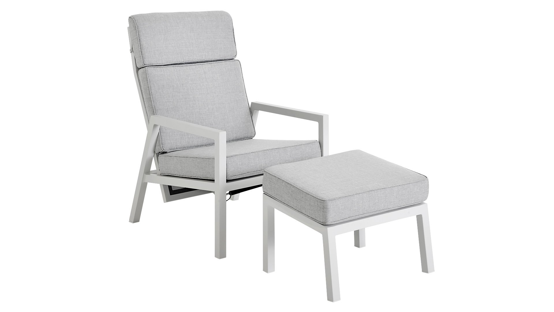 Brafab Belfort Lounge: a comfortable lounge chair with infinitely adjustable backrest made of modern materials. Can be combined in many ways. The super chic armchair with a high backrest made of powder-coated aluminum will enchant you with its seating comfort. The armchair with a high backrest is practical and super comfortable at the same time. It is infinitely adjustable through the built-in gas spring. Comfort as it should be. Also available with an anthracite aluminum frame.