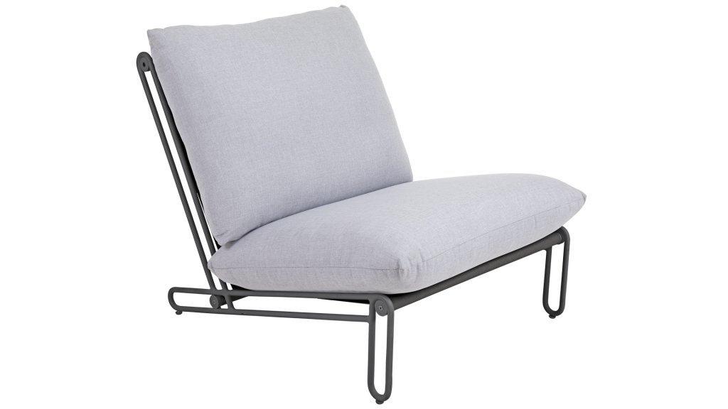 A comfortable armchair that makes a statement. The sloping seat and open aluminum frame create a delightful spot to relax. The cushions come in pink, gray, and beige. The BRAFAB BLIXT sectional sofa for outdoors is part of the BRAFAB range of outdoor furniture and is a modern modular sofa with an aluminum frame and a textilene seat. The comfortable cushions are made of water-repellent Olefin fabric. Each chair can be used as a standalone armchair or linked together to create an outdoor sofa as long as you want!