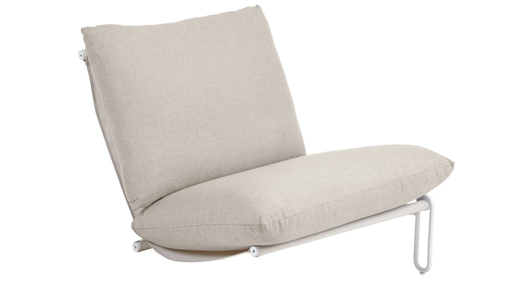 A comfortable armchair that makes a statement. The sloping seat and open aluminum frame create a delightful place to relax. The cushions are available in pink, gray, and beige. The BRAFAB BLIXT sectional sofa for outdoor use is part of the BRAFAB range of outdoor furniture and is a modern modular sofa with an aluminum frame and a seat made of textilene. The comfortable cushions are made of water-repellent Olefin fabric. Each chair can be used as a standalone armchair or connected together to create an outdoor sofa as long as you want!